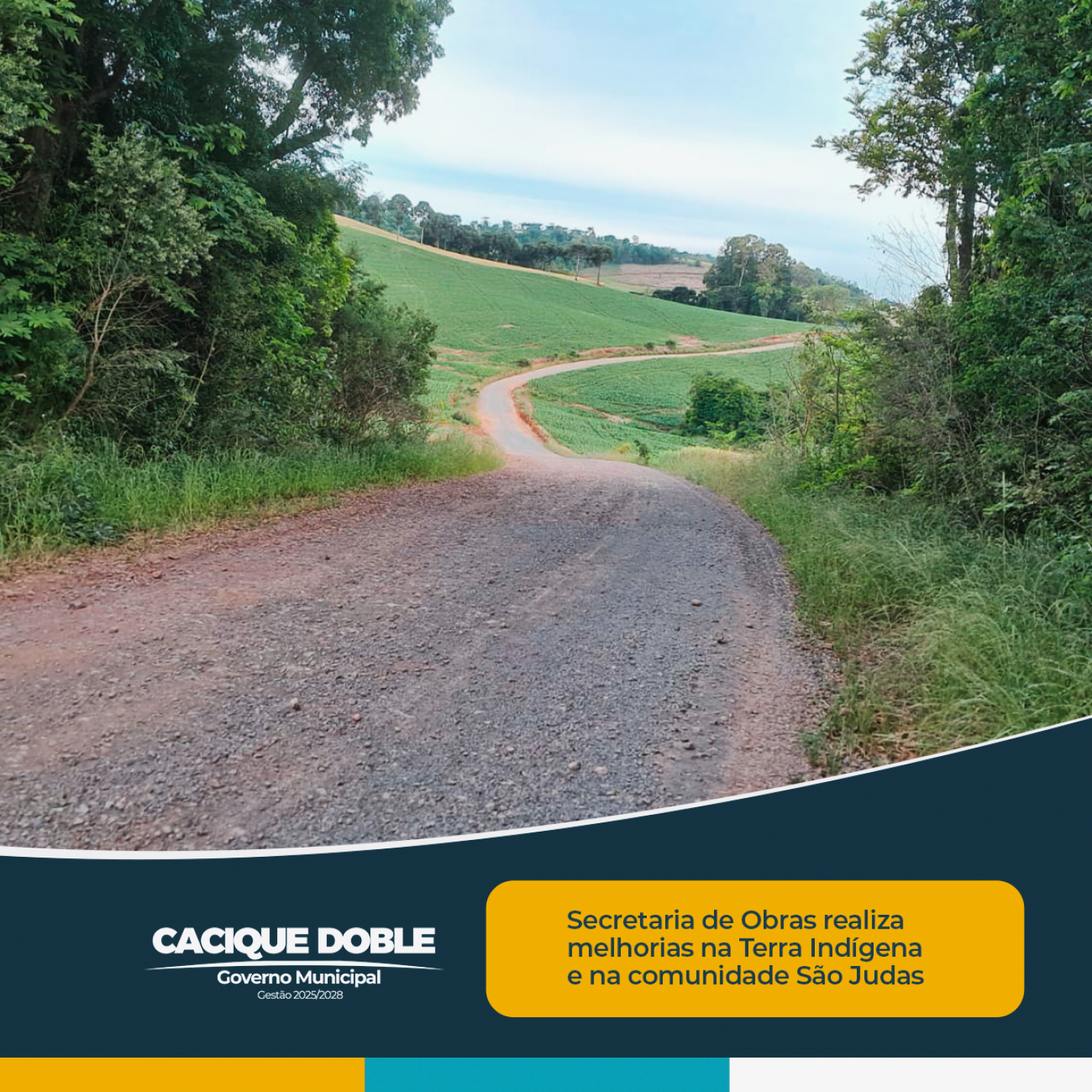 O Governo Municipal de Cacique Doble, por meio da Secretaria de Obras, segue avançando com ações que fortalecem o desenvolvimento das comunidades e garantem mais qualidade de vida à população. Na última semana, as equipes realizaram trabalhos de terraplanagem na Terra Indígena Cacique Doble, preparando o terreno para a instalação de um novo parquinho infantil na parte central da localidade. O espaço será destinado ao lazer das crianças e ao convívio das famílias, promovendo integração e bem-estar dentro da comunidade.