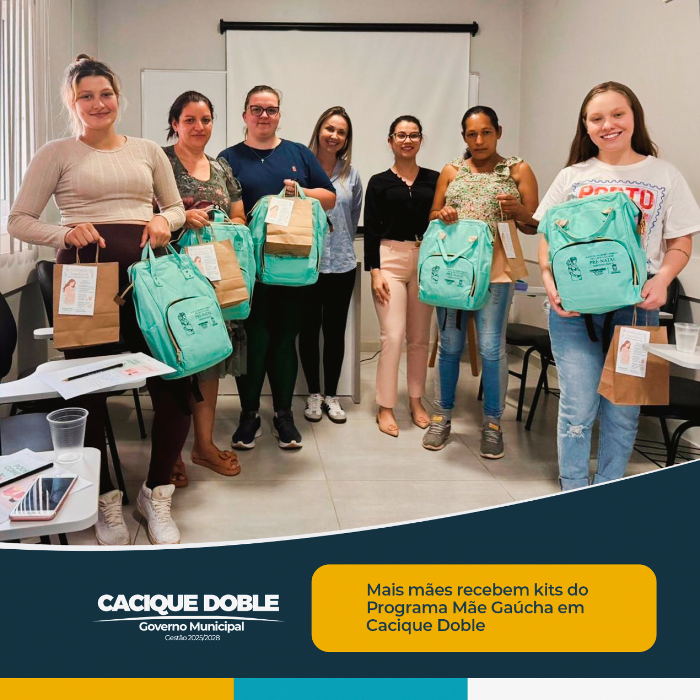 A Secretaria Municipal de Saúde de Cacique Doble promoveu, nesta sexta-feira, dia 31 de outubro, uma palestra voltada às gestantes do município, reforçando a importância do cuidado integral durante a gravidez. O encontro foi conduzido pela nutricionista Maiqueli Dias e pela dentista Etatiane Stefanon, que compartilharam informações essenciais sobre alimentação equilibrada, saúde bucal, bem-estar e autocuidado.