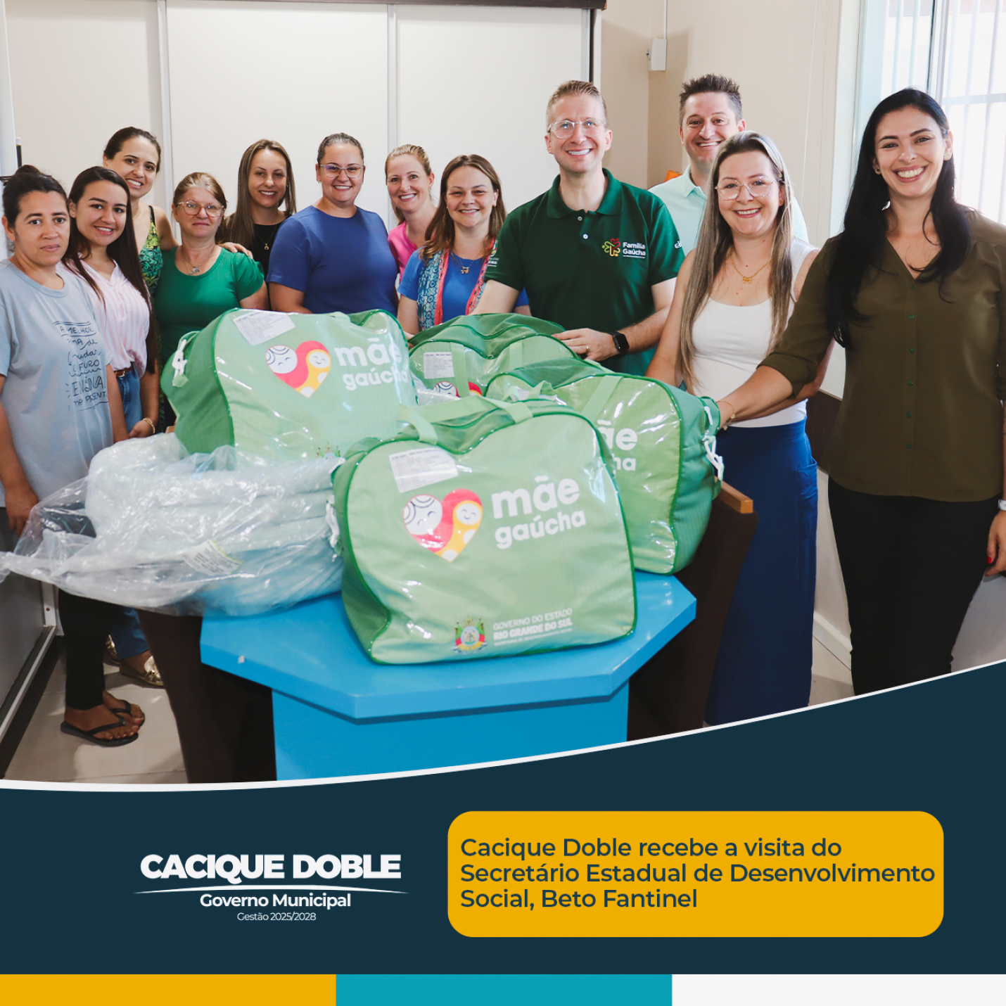 O Governo Municipal de Cacique Doble recebeu, na manhã desta sexta-feira, 06 de fevereiro, a visita do Secretário de Desenvolvimento Social do Rio Grande do Sul, Beto Fantinel. A agenda institucional reforçou o diálogo entre o município e o Governo do Estado, com foco nas políticas públicas de assistência social.