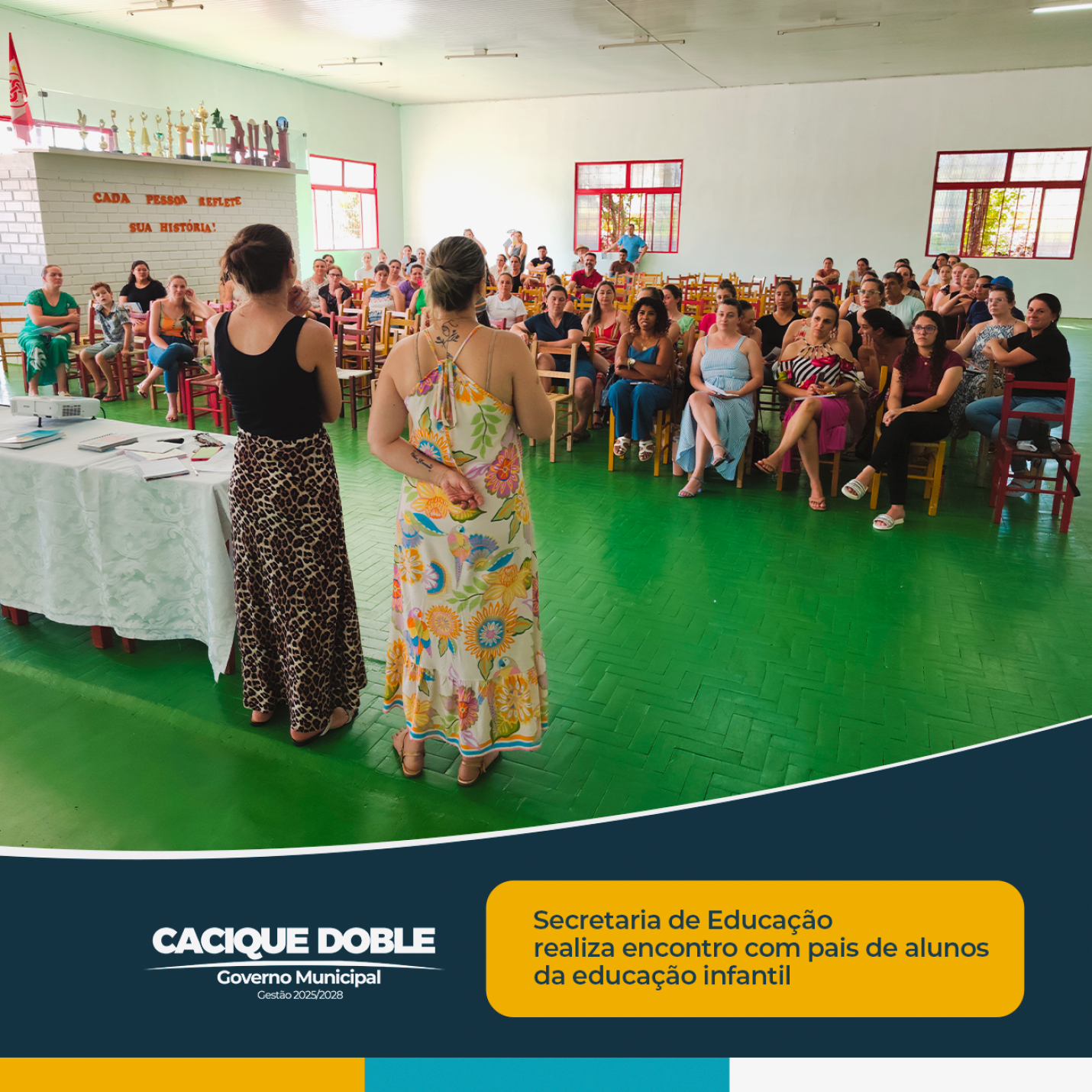 A Secretaria Municipal de Educação de Cacique Doble promoveu o primeiro encontro com pais e responsáveis dos alunos da rede municipal de ensino, reforçando o compromisso com a aproximação entre família e escola. Na tarde desta quinta-feira, dia 12 de fevereiro, o encontro reuniu pais e responsáveis dos estudantes matriculados na Escola Municipal de Educação Infantil Indígena Gir Sí My Sér e na Escola Municipal de Educação Infantil Chapeuzinho Vermelho.