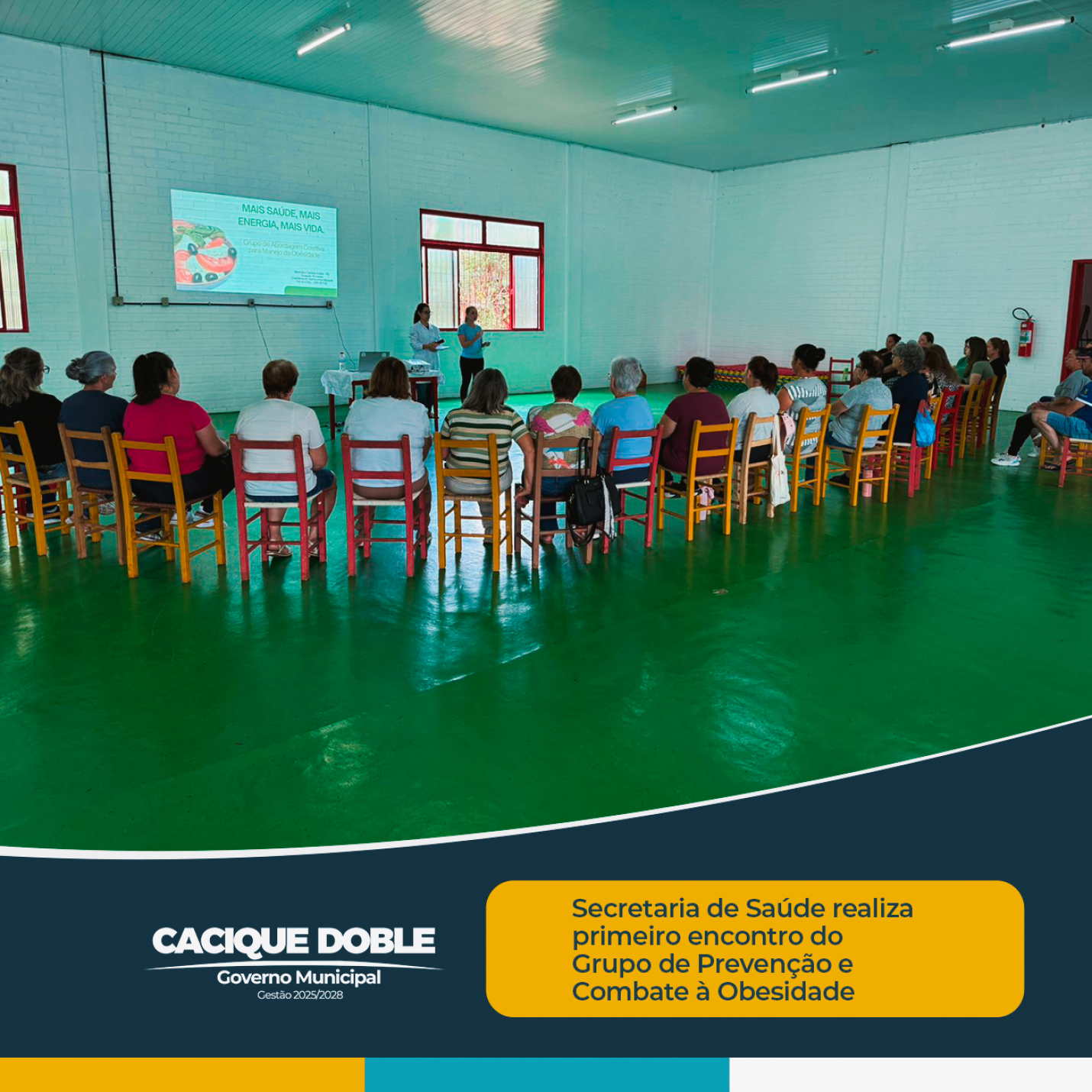 A Secretaria Municipal de Saúde de Cacique Doble realizou, nesta sexta-feira, dia 20 de fevereiro, o primeiro encontro do Grupo de Prevenção e Combate à Obesidade, iniciativa voltada à promoção da saúde, qualidade de vida e conscientização sobre hábitos saudáveis. As atividades foram realizadas pela Unidade de Saúde Centro.