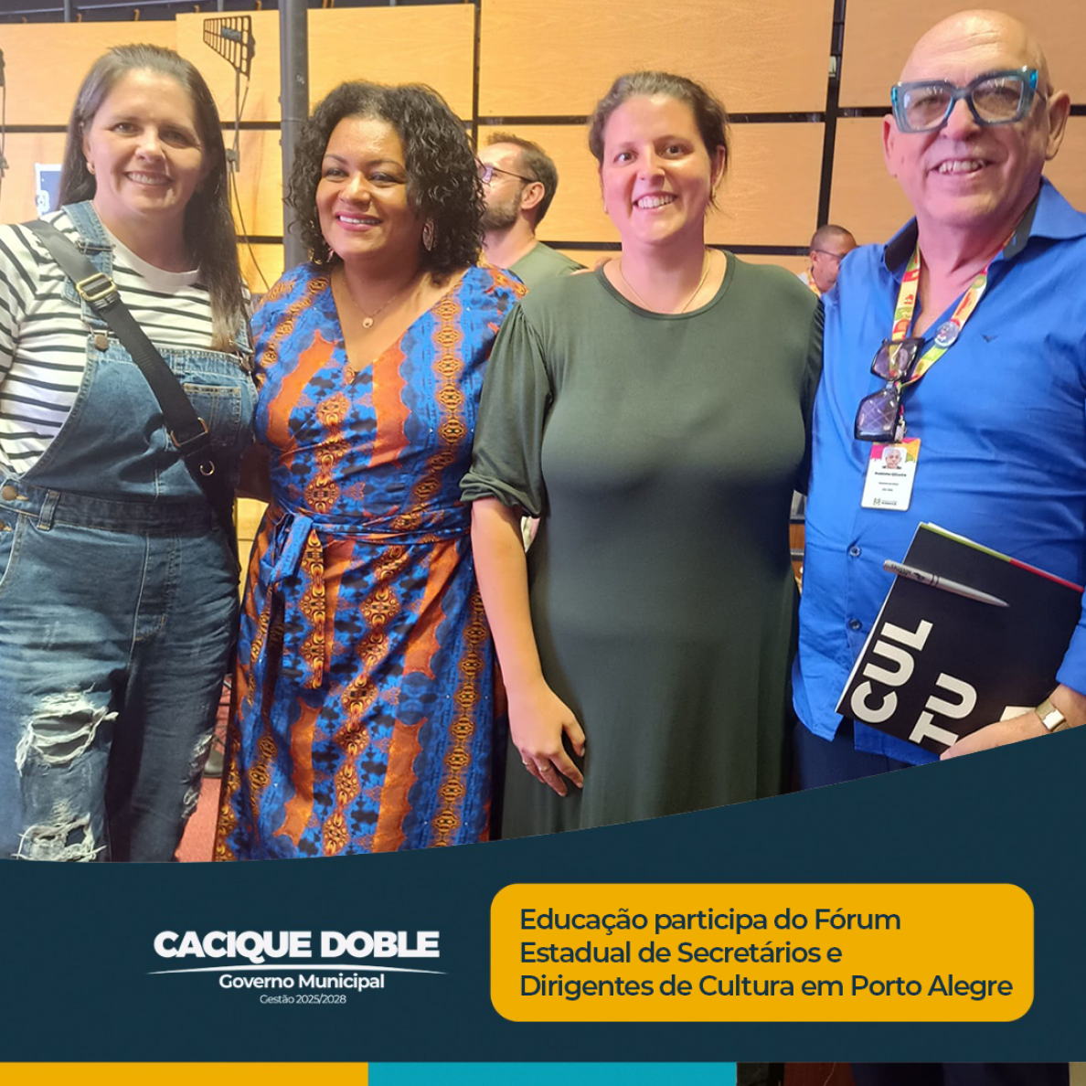 O município de Cacique Doble está representado no Fórum Estadual de Secretários e Dirigentes de Cultura, realizado nestes dias 16 e 17 de março, em Porto Alegre. O encontro é promovido pela Secretaria da Cultura do Rio Grande do Sul e reúne representantes dos governos federal, estadual e municipal para discutir os rumos das políticas públicas culturais.