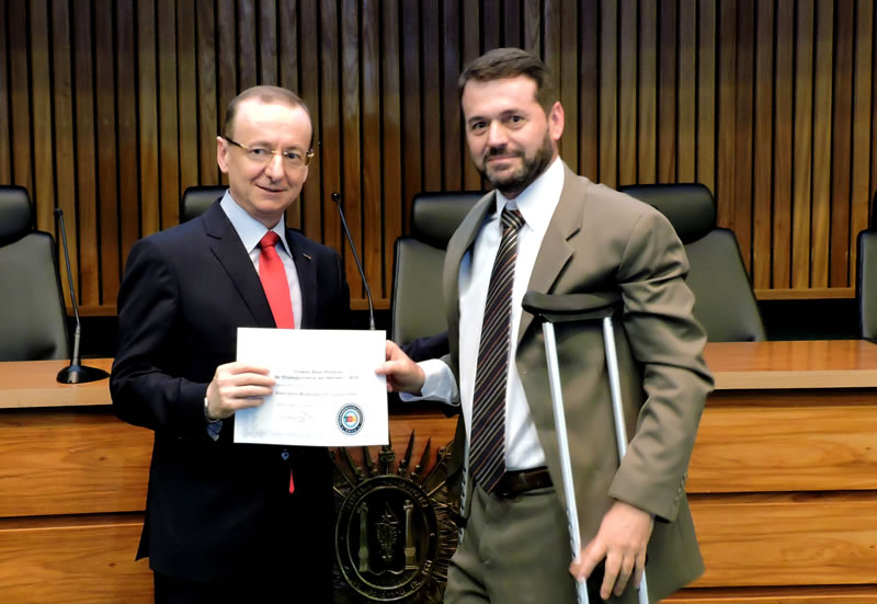 A premiação que consiste na entrega de um diploma de menção honrosa e de um selo digital do TCE-RS para os sites, aconteceu na tarde de terça-feira (20), no auditório Mondercil Paulo de Moraes no Ministério Público Estadual em Porto Alegre.