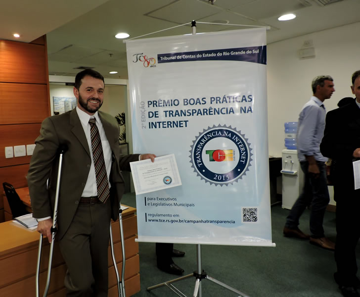 O prefeito Clairton Pasinato (PMDB), recebeu o certificado de menção honrosa e um selo digital para o site, das mãos do presidente do TCE, Cézar Miola. De acordo com Pasinato, cumprir as exigências do TCE, faz parte de um trabalho em equipe e comprometido em informar a sociedade.