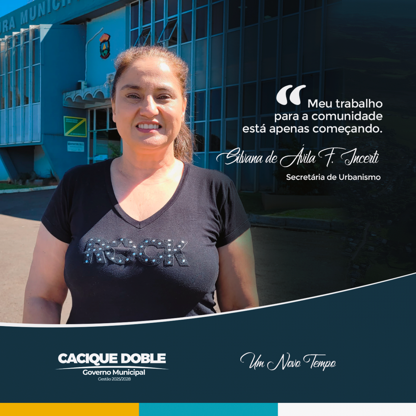 A Prefeitura de Cacique Doble anuncia Silvana de Ávila Fontoura Incerti como a nova secretária de Urbanismo. Com uma trajetória marcada pela perseverança e dedicação à comunidade, Silvana chega ao cargo com o compromisso de promover melhorias na infraestrutura urbana e na qualidade de vida da população.