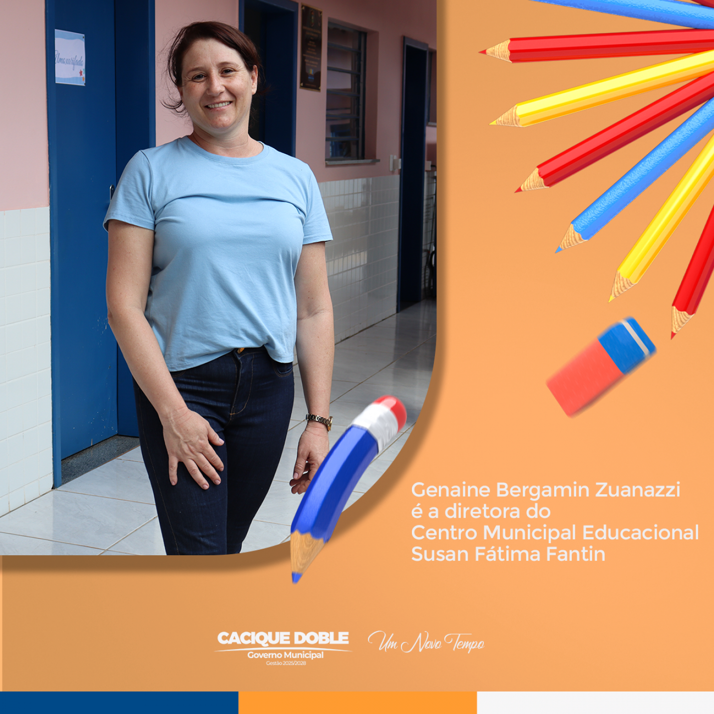 O Centro Municipal Educacional Susan Fátima Fantin deu início ao ano letivo de 2025 com a liderança da professora Genaine Bergamin Zuanazzi, que assumiu a direção da escola, trazendo sua vasta experiência na educação municipal. Formada em Pedagogia, ela tem pós-graduações em Psicopedagogia, Neuropsicopedagogia, Tecnologias Aplicadas à Educação, Gestão Escolar e Coordenação Pedagógica. Genaine atua há 20 anos na rede municipal, e agora assume o compromisso de fortalecer ainda mais o ensino e a formação dos estudantes.