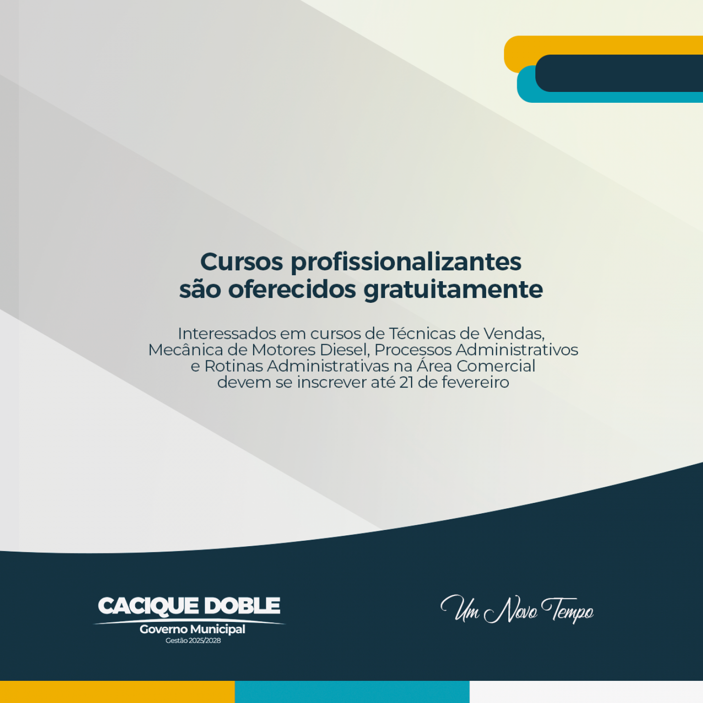 Visando aumentar a empregabilidade e inclusão social, com foco em ações de formação profissional, estão sendo oferecidos quatro cursos profissionalizantes por meio do programa RS Qualificação, uma parceria entre o município de Cacique Doble e o Governo do Estado do Rio Grande do Sul. A proposta é atender especialmente moradores desempregados ou subocupados, com o objetivo de proporcionar oportunidades de inserção no mercado de trabalho e fortalecer a economia local.