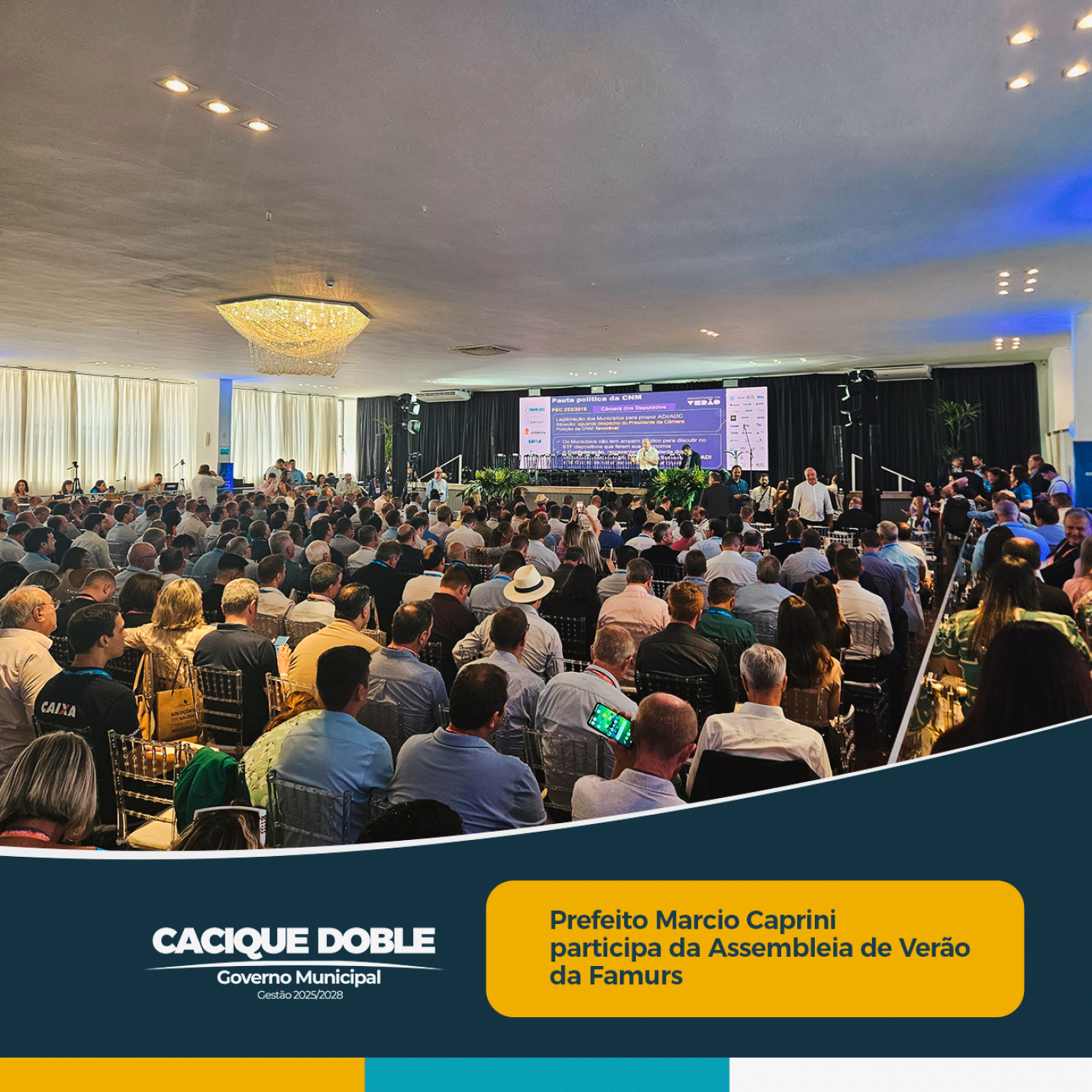 O prefeito de Cacique Doble, Marcio Caprini, está participando da tradicional Assembleia de Verão da Federação das Associações de Municípios do Rio Grande do Sul (Famurs), que acontece nos dias 19, 20 e 21 de fevereiro, na Sociedade Amigos Balneário Atlântida (SABA), no litoral gaúcho. O evento reúne gestores municipais e agentes públicos para debater temas fundamentais para o desenvolvimento dos municípios gaúchos. Além disso, a Assembleia marca o primeiro encontro dos gestores eleitos para a administração municipal no período de 2025 a 2028.