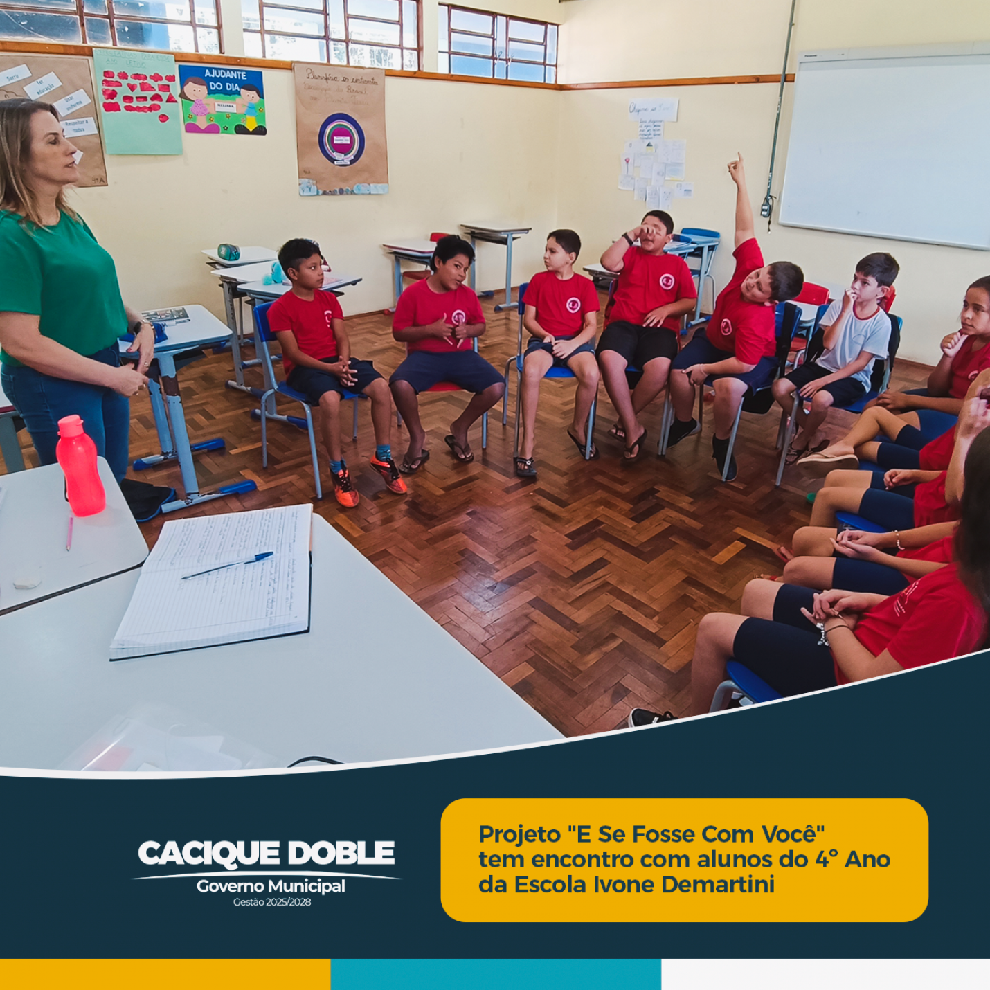A Secretaria Municipal de Educação de Cacique Doble está desenvolvendo um projeto fundamental para a prevenção ao bullying e cyberbullying nas escolas do município. O “E Se Fosse Com Você” surgiu a partir de um mapeamento escolar que identificou essa demanda como uma das mais recorrentes entre os alunos. Nesta quinta-feira, 13 de março, a ação foi realizada com os alunos do 4º ano da Escola Municipal de Ensino Fundamental Professora Ivone Salete Peruzzolo Demartini.