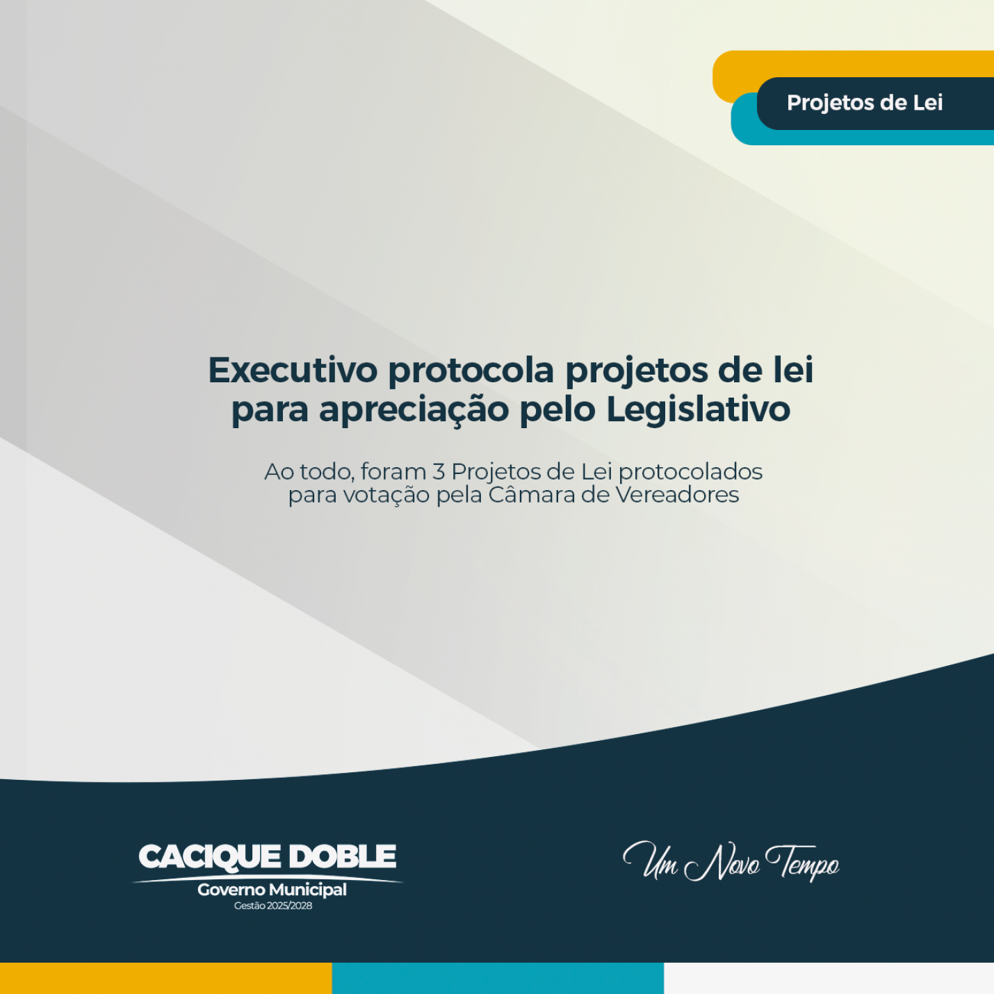 O Executivo Municipal, por meio do prefeito Marcio Caprini, encaminhou à Câmara de Vereadores de Cacique Doble, 3 projetos de lei para apreciação. As propostas abrangem questões de grande relevância para a administração municipal, buscando atender demandas importantes. Os projetos serão discutidos e analisados durante a Sessão Ordinária desta terça-feira, 25 de março.