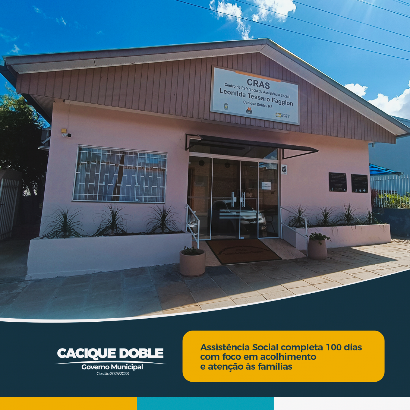 A Secretaria Municipal de Assistência Social de Cacique Doble fecha os primeiros 100 dias de gestão com uma atuação marcada pelo acolhimento, proximidade com a comunidade e uma abordagem humanizada frente às diversas demandas sociais do município. Sob a coordenação da primeira-dama e secretária Juliane Pasinato, a Assistência Social segue comprometida com a garantia de direitos, a promoção da dignidade e o cuidado com as pessoas, fortalecendo vínculos e promovendo o bem-estar de quem mais precisa.