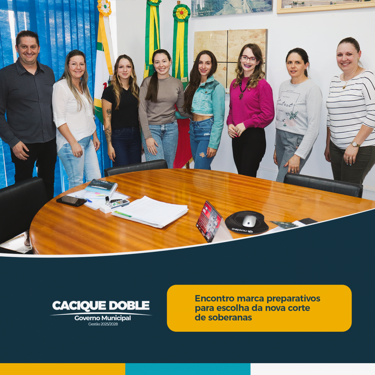 Na tarde desta terça-feira, 15 de abril, a comissão organizadora do concurso esteve reunida na sala de reuniões do gabinete do prefeito para definir os primeiros detalhes do evento. O encontro contou com a presença do prefeito Marcio Caprini, da atual corte municipal — composta pela Rainha Eduarda Bueno, Primeira Princesa Mariana Silvestro e Segunda Princesa Rafaela Carlesso — além dos integrantes da comissão.