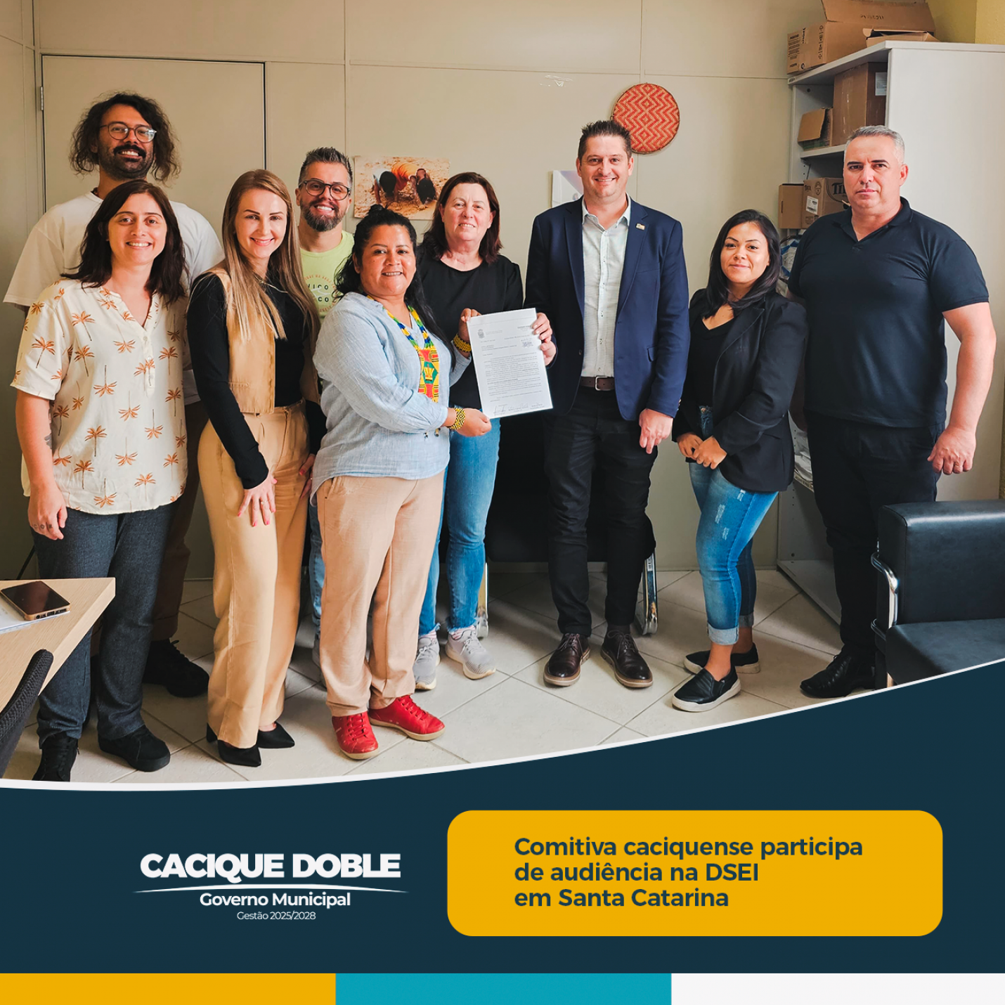 Com o objetivo de apresentar as demandas da comunidade indígena, nesta quinta-feira, 24 de abril, uma comitiva do município de Cacique Doble esteve em São José, Santa Catarina, em audiência com a coordenadora do Distrito Sanitário Especial Indígena (DSEI) – Interior Sul, Eunice Antunes (Kerexu). A pauta abordou assuntos diversos relacionados à qualidade de vida da população indígena, como saúde, habitação, saneamento básico e o fortalecimento das ações conjuntas entre o município e o órgão federal.