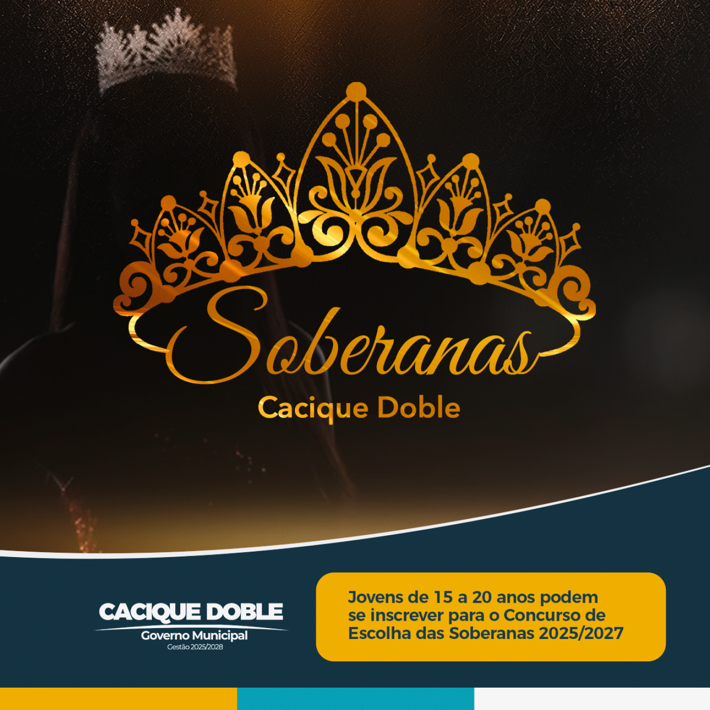 Seguem abertas as inscrições para o Concurso de Escolha das Soberanas 2025/2027 de Cacique Doble. O concurso elegerá a nova Rainha e duas Princesas, que terão a missão de representar o município em eventos oficiais, culturais e festivos. As interessadas devem realizar sua inscrição até o dia 5 de maio, entregando a ficha de inscrição preenchida na recepção da Prefeitura Municipal, em horário de expediente.