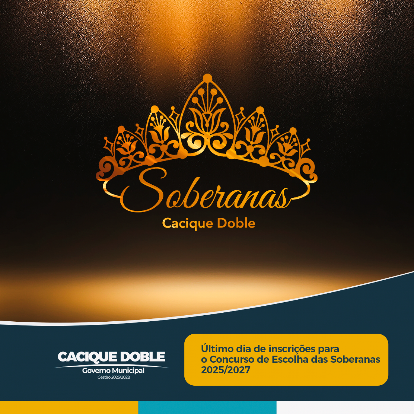 Nesta segunda-feira, dia 05 de maio encerram as inscrições para o Concurso de Escolha das Soberanas 2025/2027 de Cacique Doble. O concurso elegerá a nova Rainha e duas Princesas, que terão a missão de representar o município em eventos oficiais, culturais e festivos.
