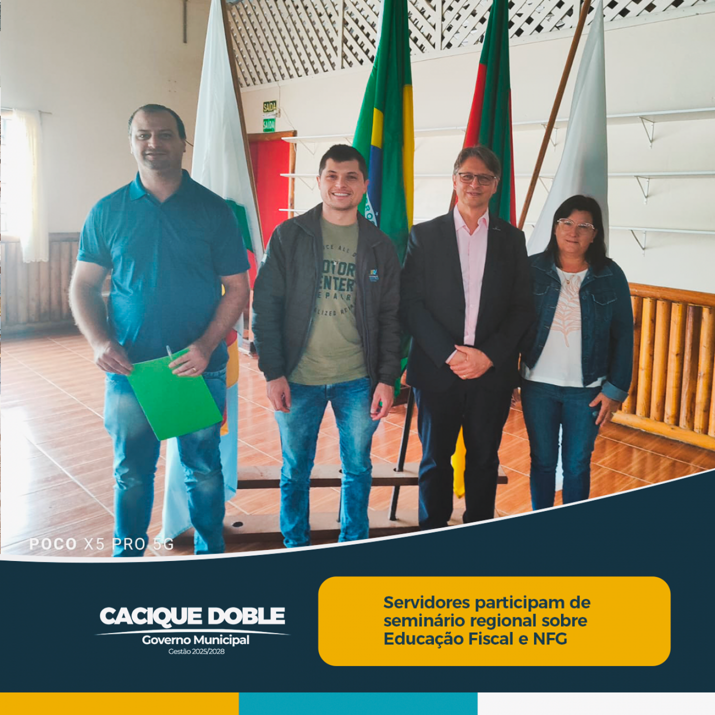 Os servidores Edivan Navarini, Roseli Belini e Jean Carlo Buziki representaram o município de Cacique Doble no I Seminário Regional de Boas Práticas em Educação Fiscal e Nota Fiscal Gaúcha, realizado na manhã nesta quinta-feira, dia 8 de maio, no CTG Rancho Amigo, em Barão de Cotegipe.