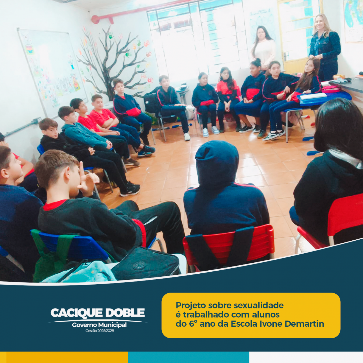 Dando continuidade às ações do projeto "Sexualidade na Medida Certa", a turma do 6º ano A da Escola Municipal de Ensino Fundamental Professora Ivone Salete Peruzzolo Demartini participou nesta segunda-feira, dia 19 de maio, de uma importante atividade de conscientização, orientação e proteção, desenvolvida pelas profissionais da rede de apoio à escola.