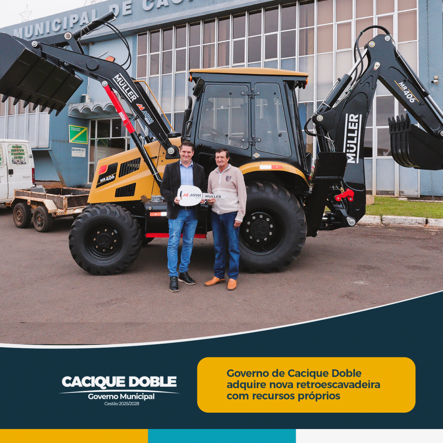 A nova retroescavadeira, da marca Müller, conta com cabine fechada, ar-condicionado, tração 4x4 e alta potência, atendendo aos padrões mais exigentes de qualidade e segurança. A aquisição reforça o compromisso da administração municipal com investimentos responsáveis, transparência na gestão e melhorias efetivas para a população de Cacique Doble.