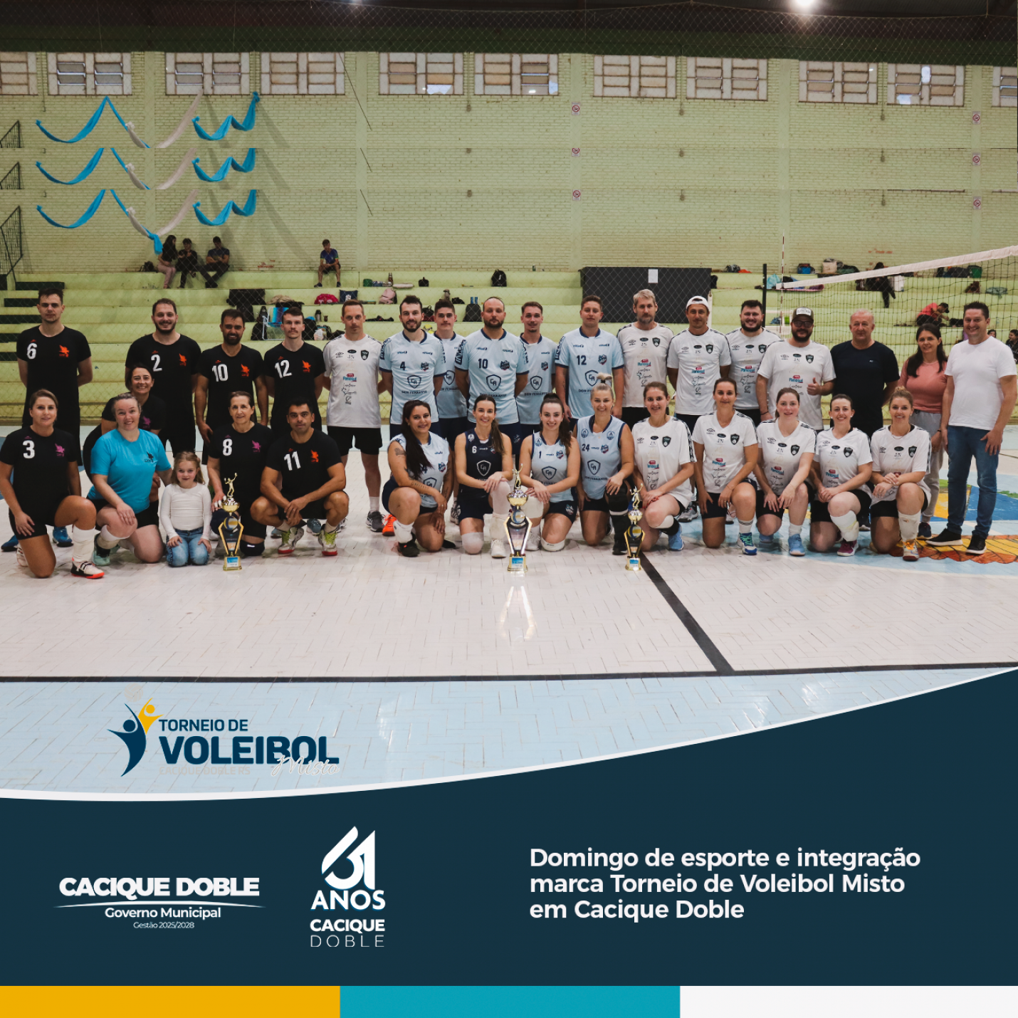 Em meio às comemorações dos 61 anos de emancipação de Cacique Doble, o esporte também teve seu lugar de destaque. Neste domingo, dia 25 de maio, o Ginásio de Esportes do município foi palco do Torneio de Voleibol Misto, reunindo atletas, torcida e emoção em uma jornada de confraternização e espírito esportivo.