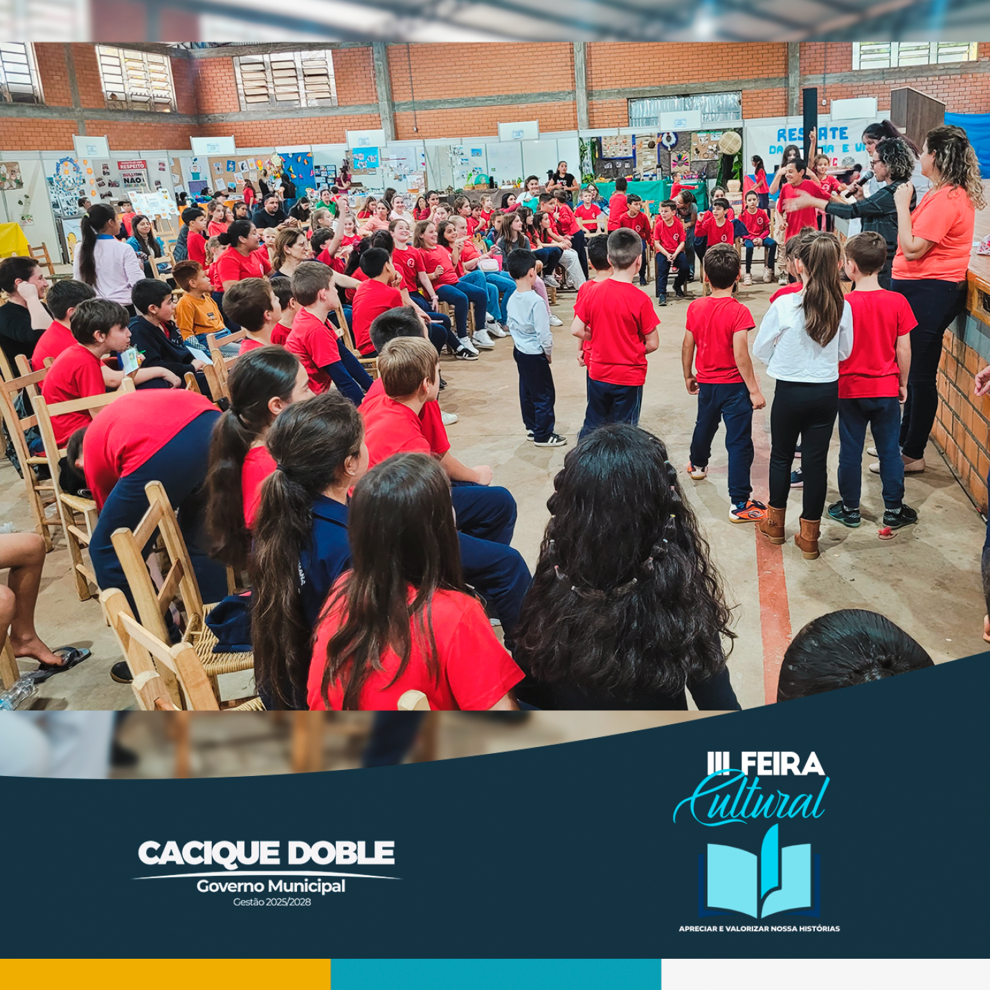 A tarde desta terça-feira, 27 de maio, foi repleta de interação na III Feira Cultural de Cacique Doble – “Apreciar e Valorizar Nossas Histórias”, realizada no Parque de Eventos Simão Pedro Tonial. Com a participação das escolas Ivone Salete Peruzzolo Demartini, Belmiro José Granzoto e Suzan Fátima Fantin, o espaço foi tomado pela animação das crianças e por apresentações que valorizaram o talento local.
