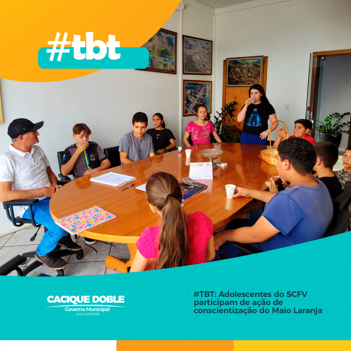 Os adolescentes integrantes do Serviço de Convivência e Fortalecimento de Vínculos (SCFV) participaram de uma importante ação de conscientização do Maio Laranja, mês dedicado à luta contra o abuso e a exploração sexual de crianças e adolescentes. A atividade realizada no dia 26 de maio, ocorreu nas dependências do CRAS de Cacique Doble, com a presença dos três grupos de adolescentes, somando 21 participantes, sob coordenação das técnicas Emília Dal Moro e Elisamara Dal Moro.
