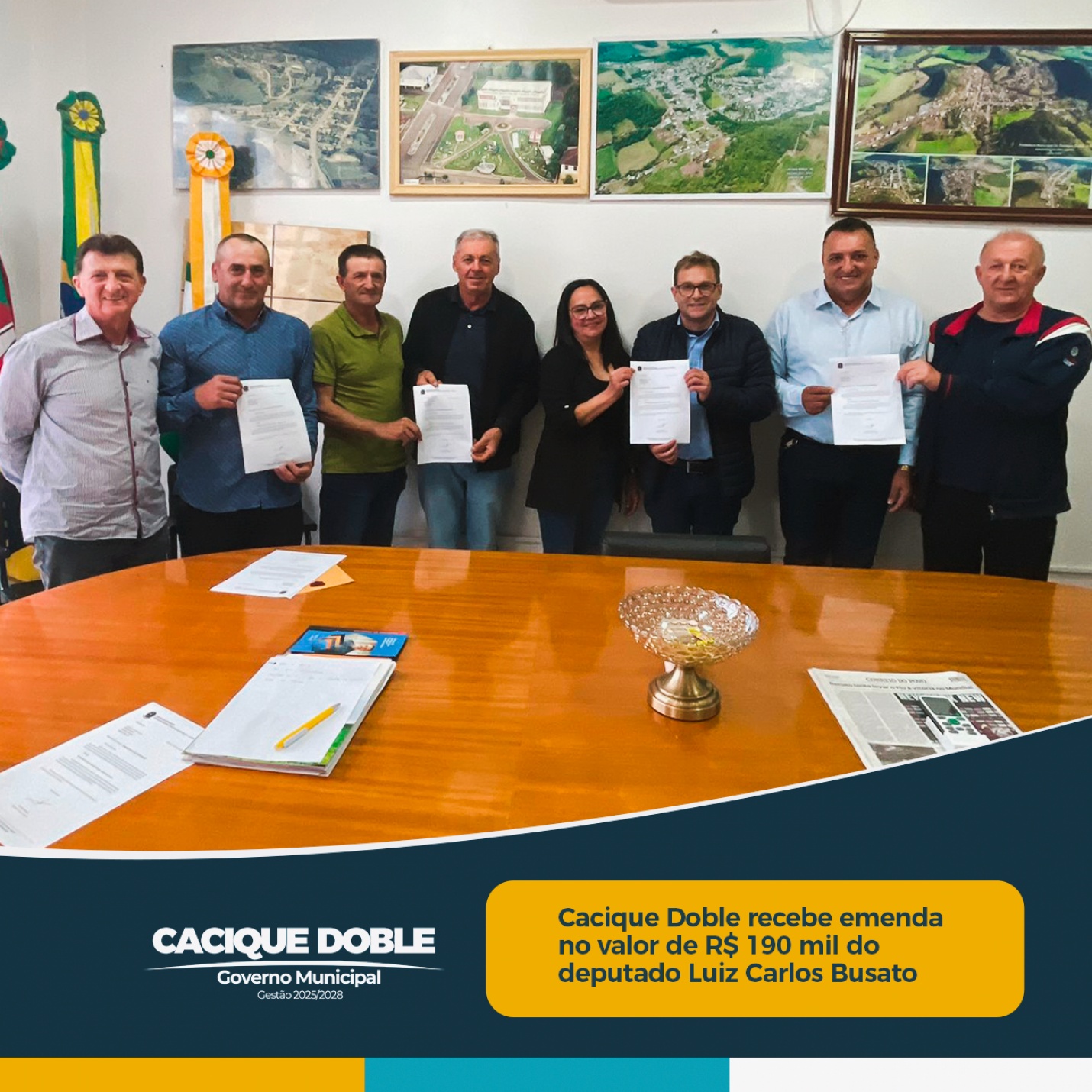 No final da tarde desta terça-feira, dia 17 de junho, o vice-prefeito de Cacique Doble, Alceu Demartini, recebeu o ofício que confirma a destinação de uma emenda parlamentar no valor de R$ 190.000,00 do deputado federal Luiz Carlos Busato. O recurso será destinado ao custeio da área da saúde, visando fortalecer o atendimento à população.