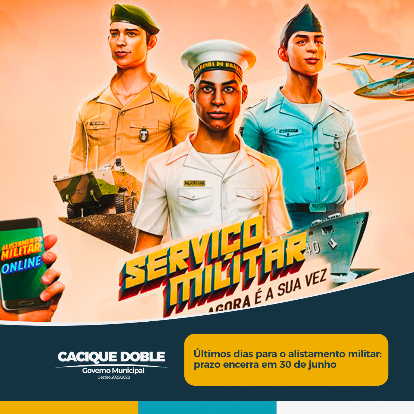 A Junta de Serviço Militar de Cacique Doble reforça o alerta aos jovens que completam 18 anos em 2025: o prazo para realizar o alistamento militar obrigatório termina na próxima segunda-feira, dia 30 de junho. O procedimento é fundamental para garantir o exercício pleno da cidadania e evitar restrições futuras.