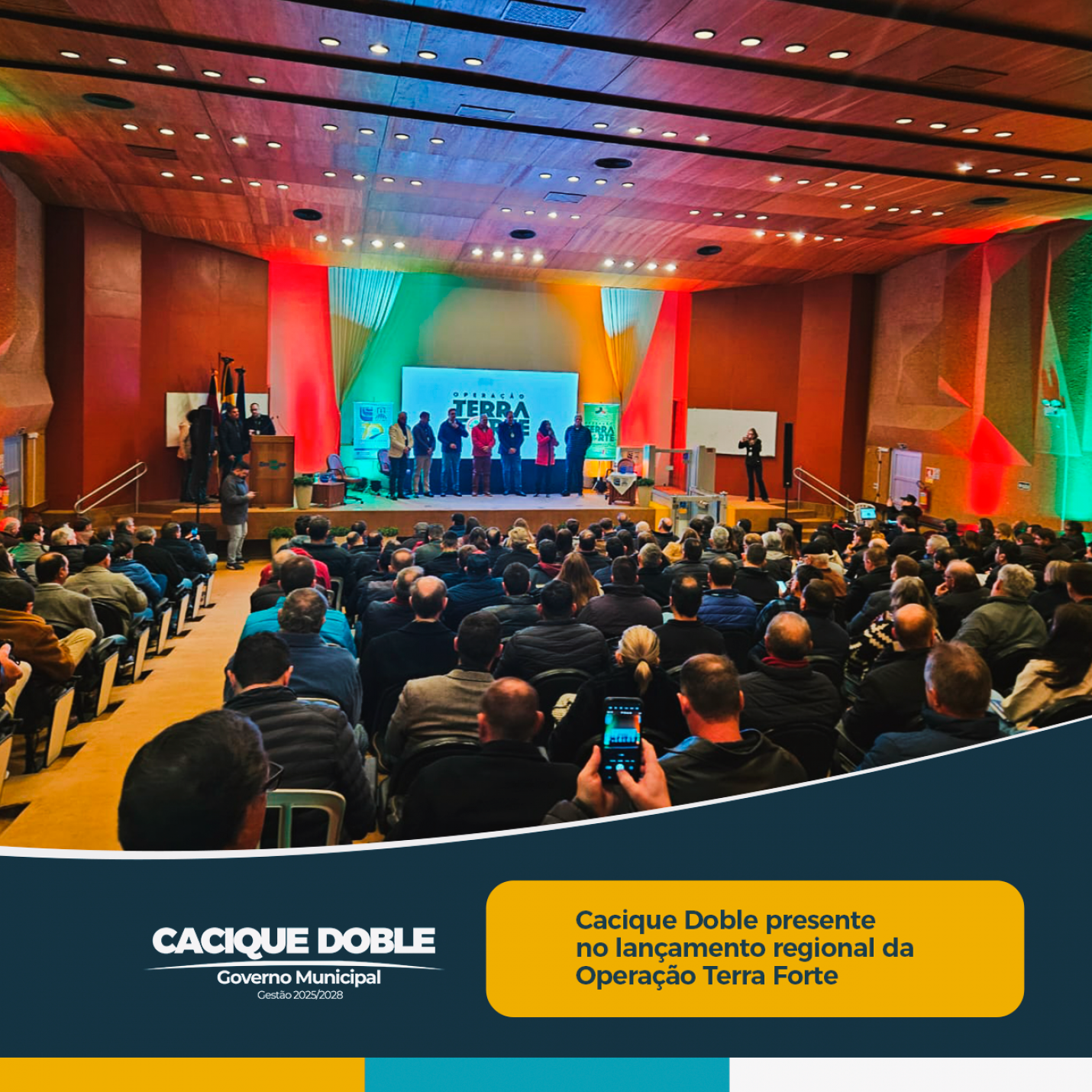 Na manhã desta quarta-feira, 25 de junho, o prefeito Marcio Caprini, o vice-prefeito Alceu Demartini, colaboradores e servidores da Secretaria Municipal de Agricultura de Cacique Doble, juntamente com o presidente do Conselho Municipal de Agricultura, Fábio Olivotto, participaram da apresentação regional da Operação Terra Forte, realizada em Passo Fundo pelo Governo do Estado do Rio Grande do Sul e a Emater/RS-Ascar.
