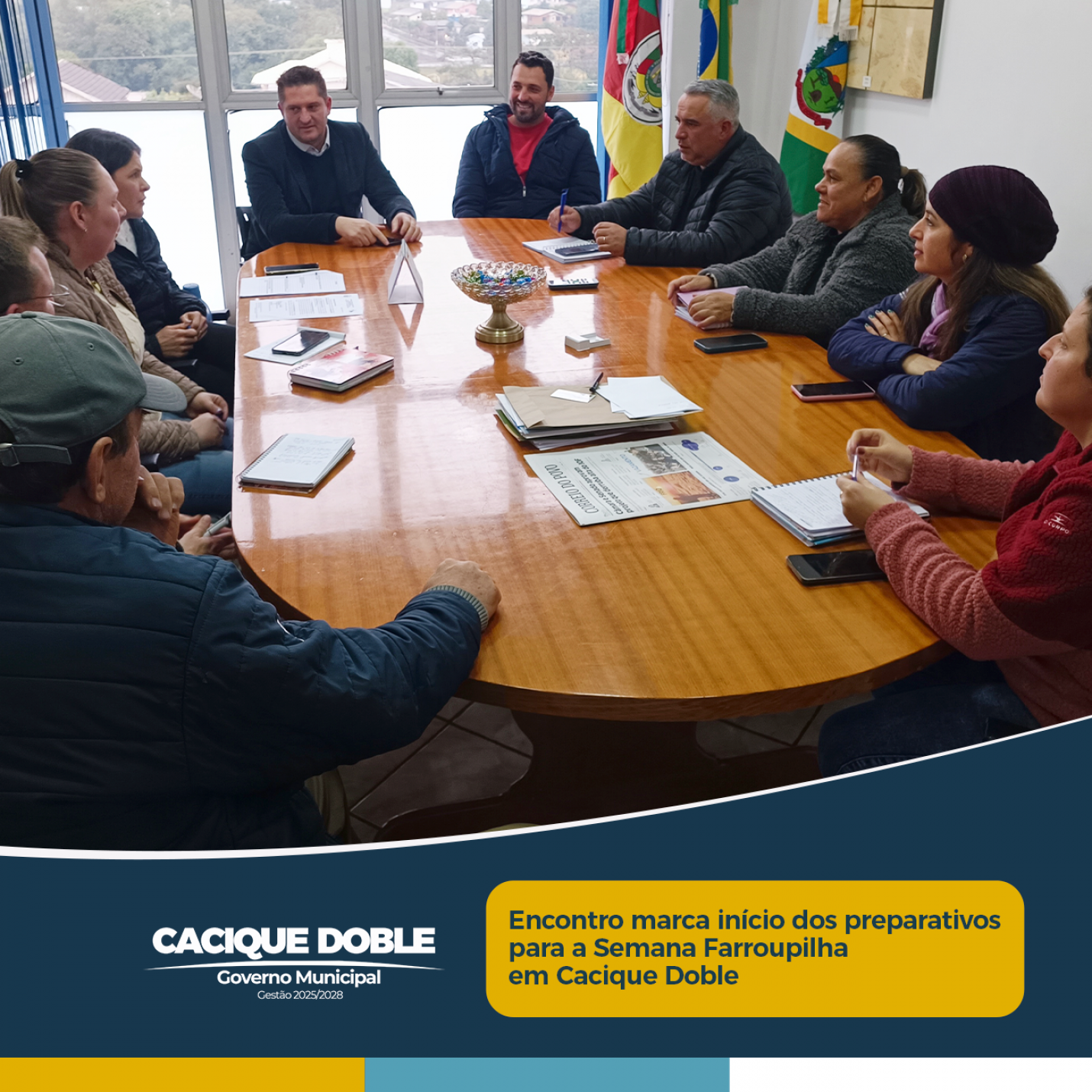 A primeira reunião oficial para o planejamento das festividades da Semana Farroupilha 2025 em Cacique Doble foi realizada na tarde desta quinta-feira, dia 26 de junho, no gabinete do prefeito Marcio Caprini. O encontro reuniu representantes das entidades tradicionalistas do município e membros do Governo Municipal com o objetivo de dar início à organização do evento, que é um dos mais importantes para a cultura gaúcha.