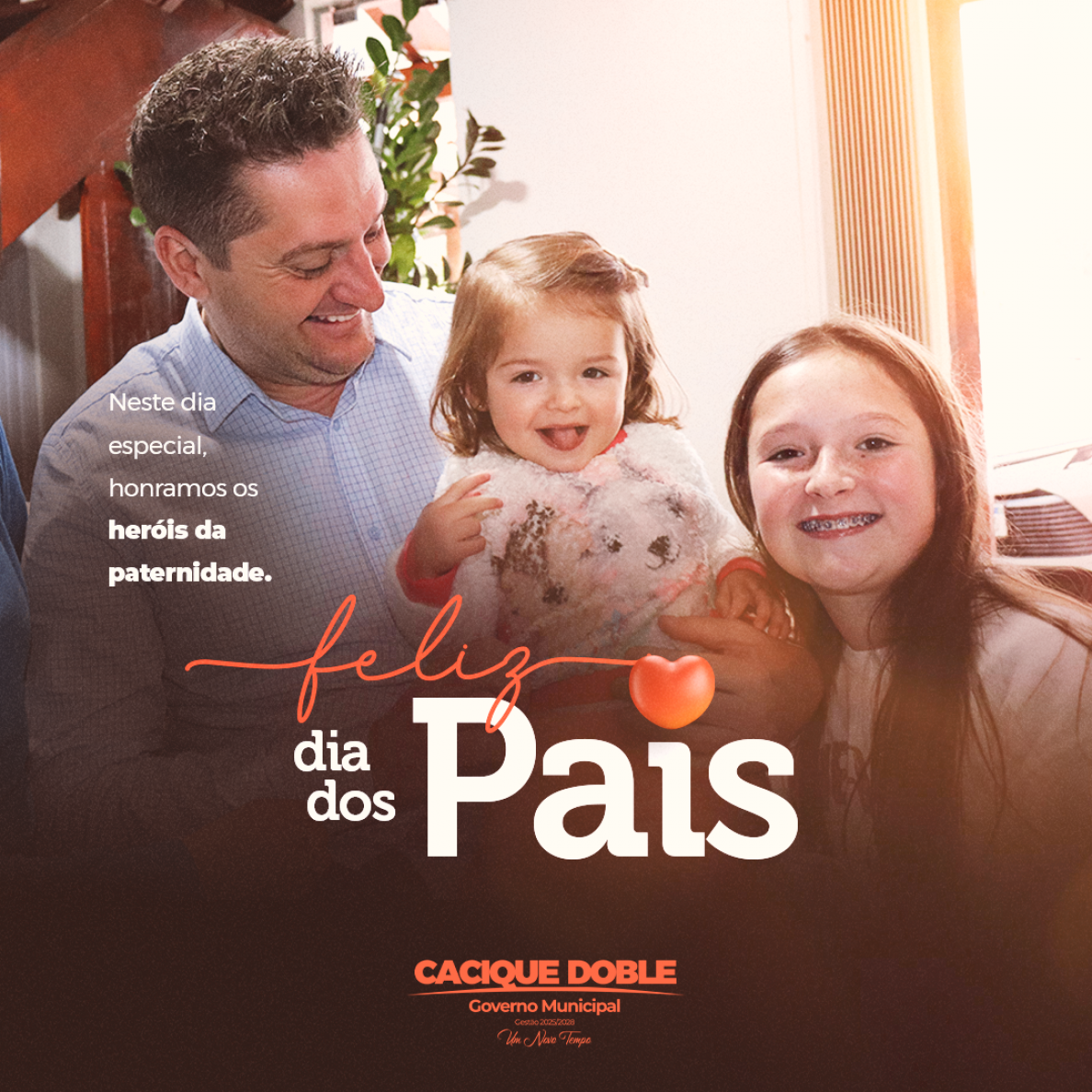 Neste Dia dos Pais, o Governo Municipal de Cacique Doble, em nome do Prefeito Marcio Caprini e do Vice-prefeito Alceu Demartini, presta uma sincera homenagem a todos os pais do nosso município.