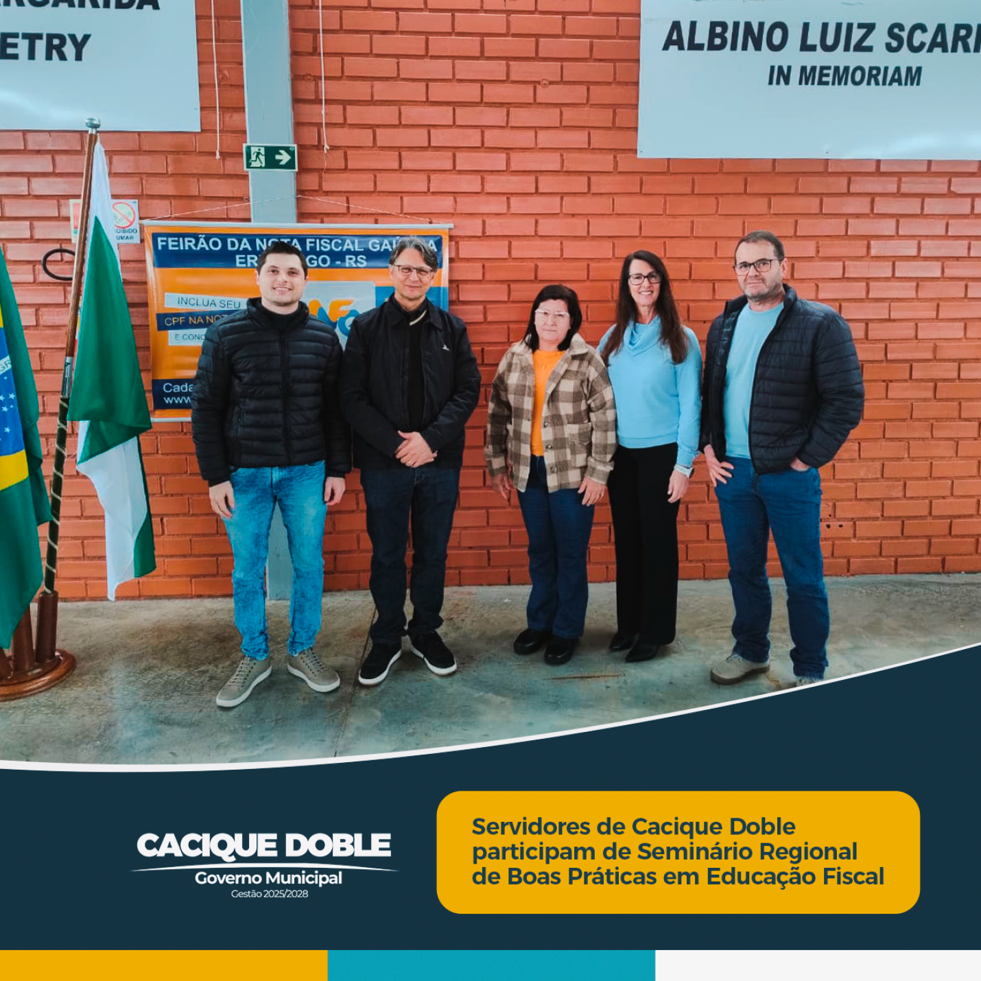 Representantes de diversos municípios da região estiveram reunidos no I Seminário Regional de Boas Práticas em Educação Fiscal e Nota Fiscal Gaúcha, para debater a importância da educação fiscal como ferramenta pedagógica e apresentar experiências de sucesso na área. Os servidores municipais Roseli Belini, Clairton Pasinato e Jean Carlo Buziki representaram Cacique Doble no evento, realizado no dia 07 de agosto, no Salão Paroquial da Comunidade São Sebastião, em Erebango.