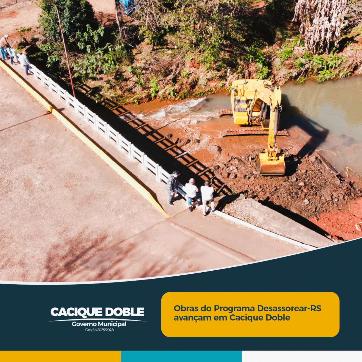 As obras do Programa Desassorear-RS seguem sendo realizadas em Cacique Doble, com o objetivo de promover a limpeza e o desassoreamento do Rio Carazinho e de seus afluentes. A ação faz parte de um conjunto de medidas voltadas para reduzir o risco de alagamentos e melhorar a capacidade de escoamento das águas, garantindo mais segurança para a população.