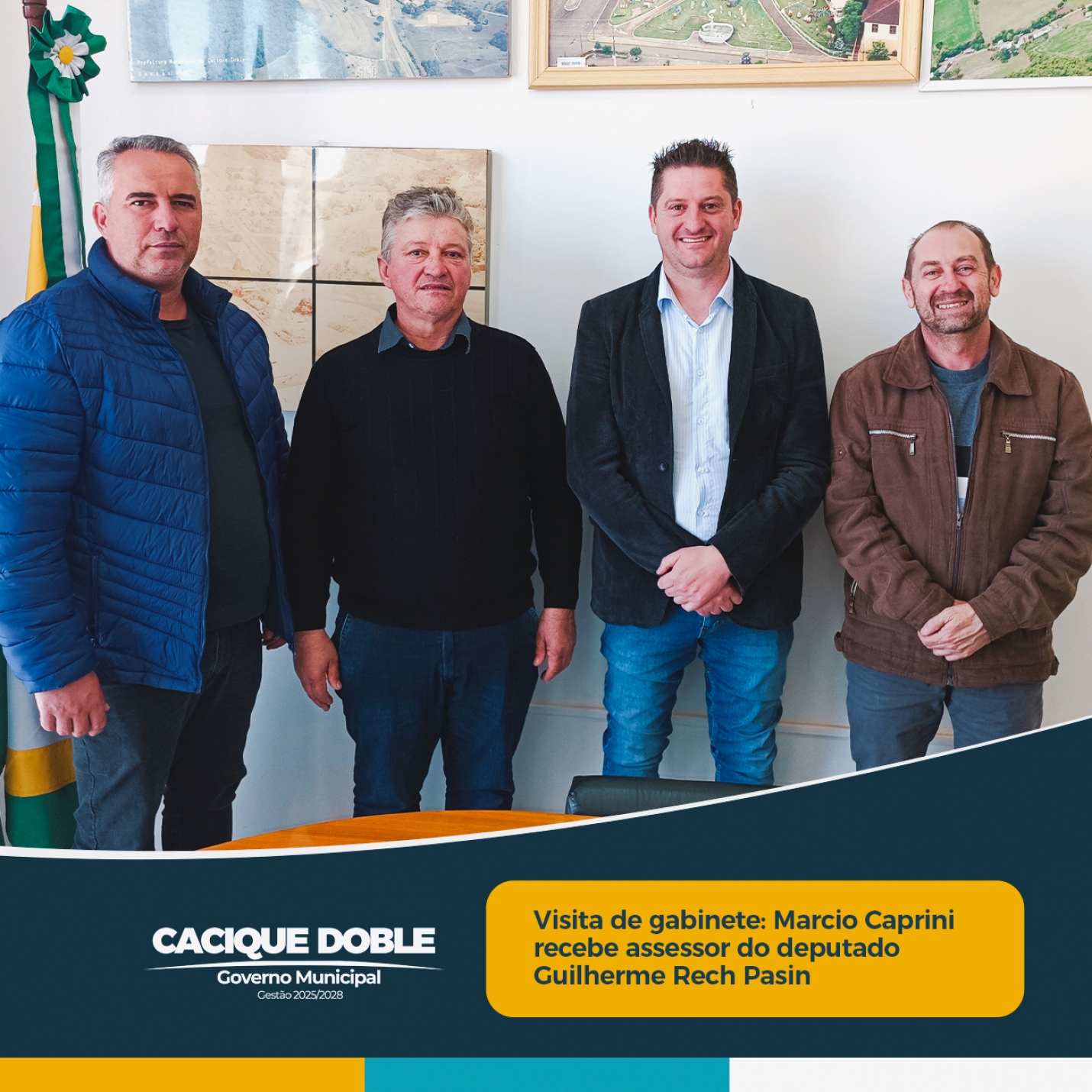 A reunião contou também com a presença do presidente do Progressistas (PP) de Cacique Doble, Odailson Pasinato, e do secretário municipal de Administração, Joceli Paim Zorzan. Durante a conversa, foram discutidas possibilidades de colaboração e o fortalecimento de parcerias para viabilizar projetos e recursos para o município.