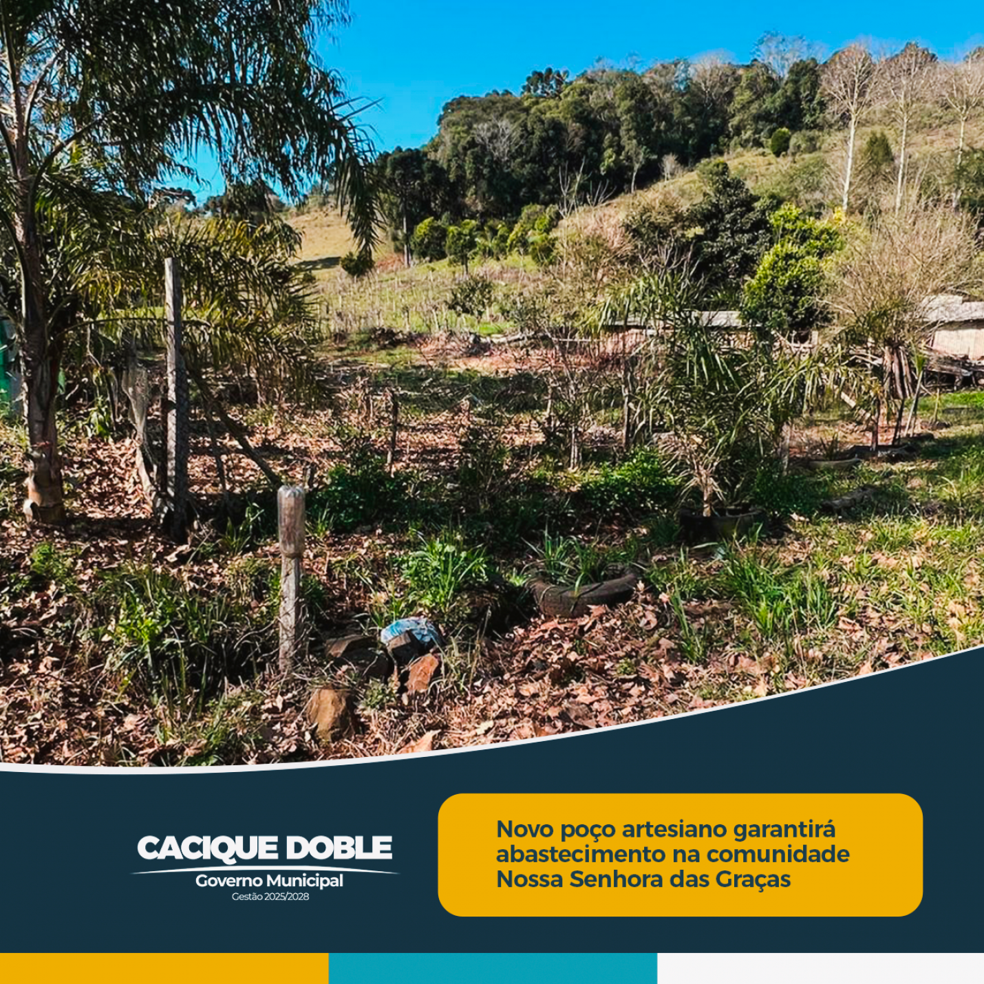 A água, elemento vital para a vida e para a produção rural, está prestes a chegar com mais segurança e regularidade para os moradores da comunidade Nossa Senhora das Graças, em Cacique Doble. A localidade será contemplada com a perfuração de um poço artesiano, medida que busca amenizar os impactos da crise hídrica causada pelas frequentes estiagens que afetam o Rio Grande do Sul, especialmente nas áreas rurais.