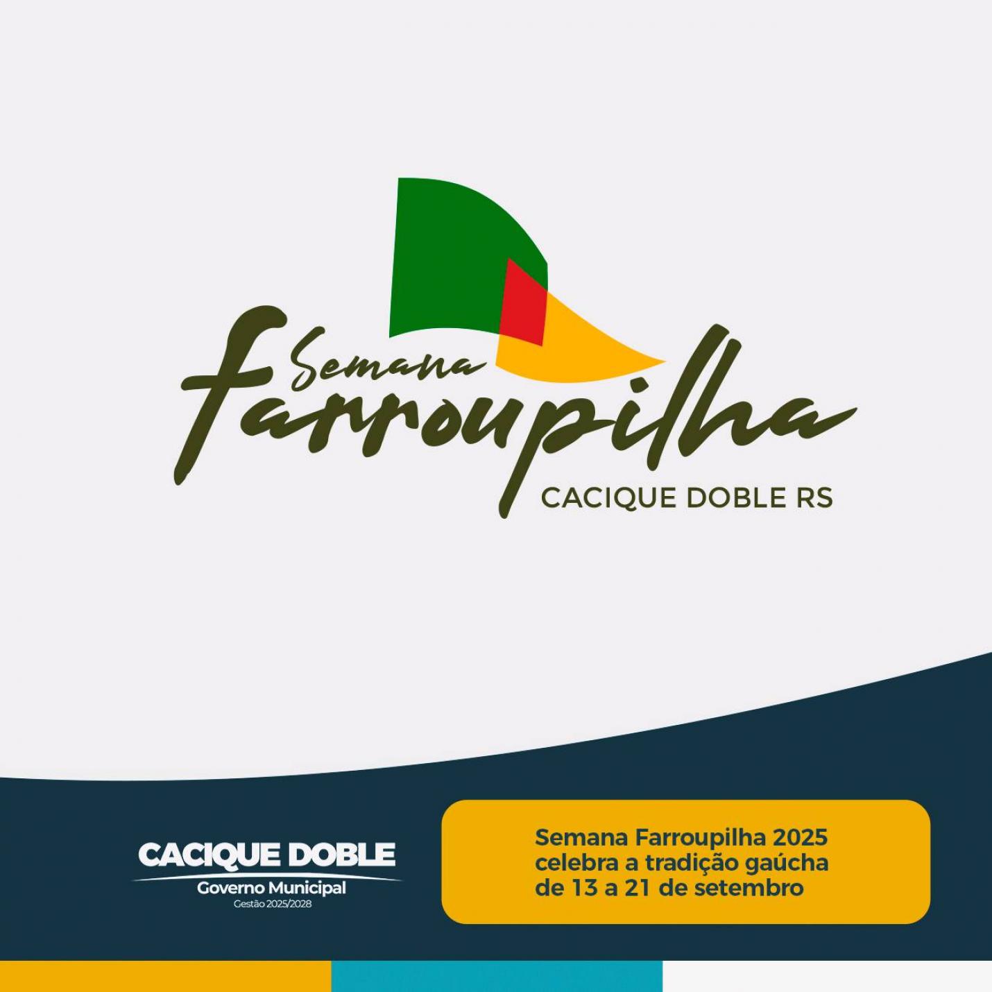 O município de Cacique Doble viverá intensamente a tradição gaúcha com a realização da Semana Farroupilha 2025, promovida pela Secretaria Municipal de Educação, Cultura, Desporto e Juventude de 13 a 21 de setembro. As atividades acontecerão no Parque de Eventos Simão Pedro Tonial, reunindo cavalgadas, apresentações artísticas, gincanas, shows, bailes e muito mais.