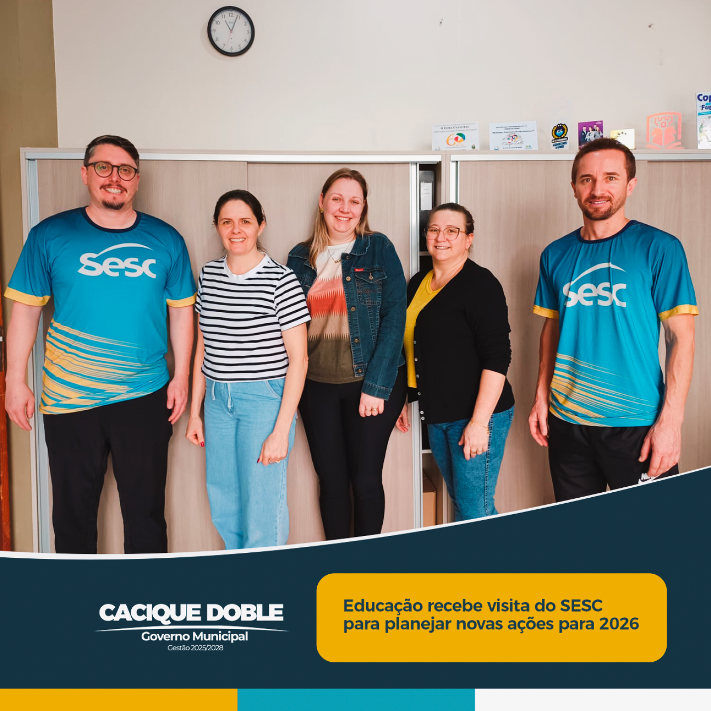 Acreditando no poder transformador da educação aliada ao esporte, nesta quinta-feira, 4 de setembro, a Secretaria Municipal de Educação de Cacique Doble recebeu a visita de representantes do SESC, com o objetivo de avaliar a viabilidade de novas ações esportivas para o ano de 2026, fortalecendo a prática de atividades que unem aprendizado, saúde, integração e cidadania.
