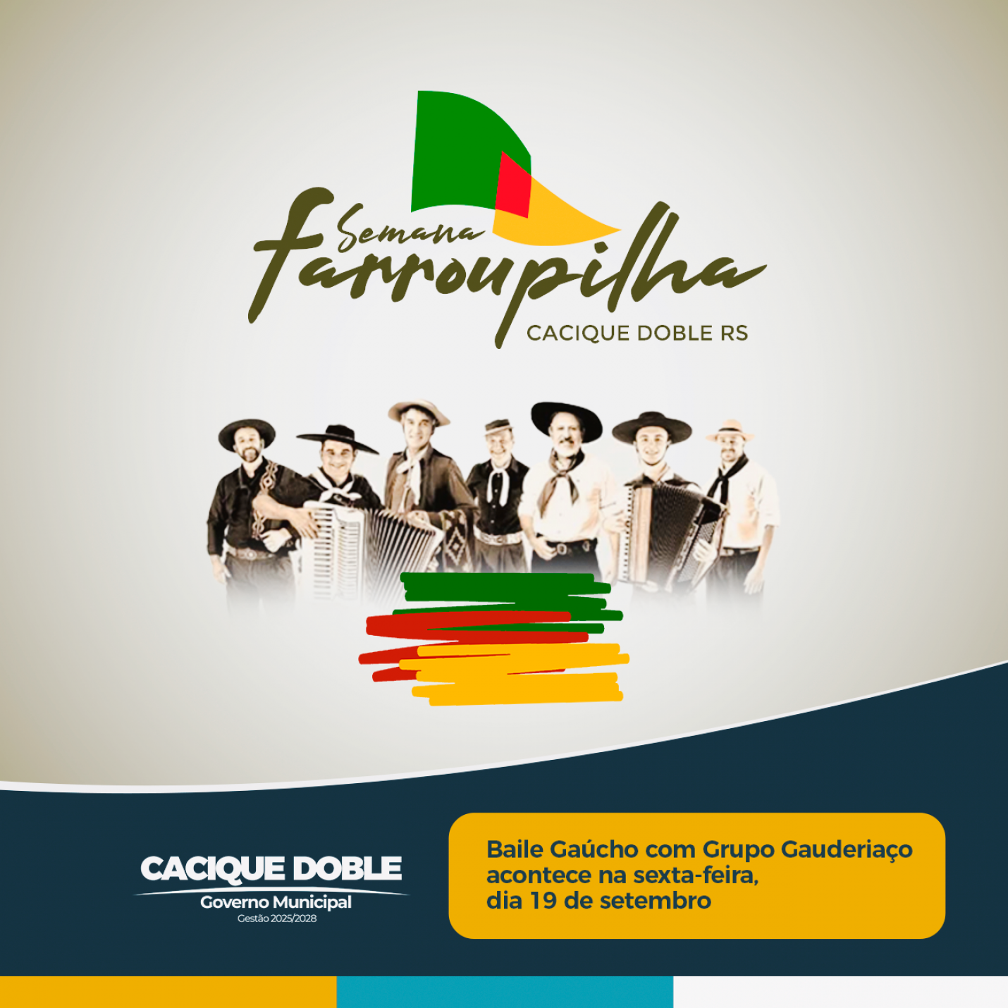 A Semana Farroupilha de Cacique Doble 2025, que acontece de 13 a 20 de setembro, reserva uma noite especial para os amantes da tradição, da música e da cultura gaúcha. No dia 19 de setembro, sexta-feira, a partir das 22h, o Parque de Eventos Simão Pedro Tonial será palco de um grande baile gaúcho ao som do Grupo Gauderiaço, prometendo uma festa cheia de energia, dança e integração da comunidade.