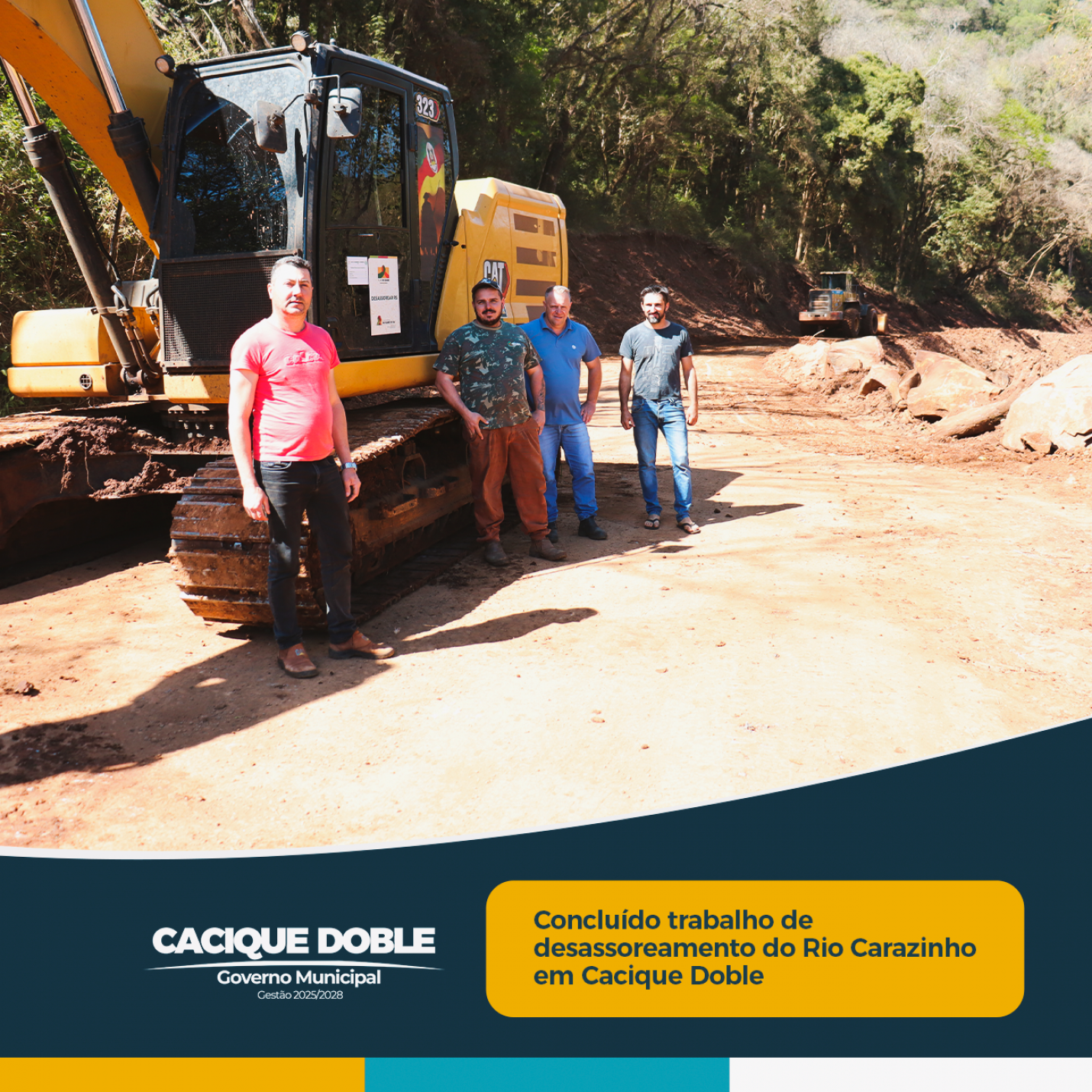 Foi concluída mais uma etapa do Programa Desassorear RS em Cacique Doble, ampliando o trabalho de limpeza e manutenção do Rio Carazinho e seus afluentes. A ação assegurou a retirada de mais 2.500 metros cúbicos de material em um trecho de 420 metros, resultado de um aditivo ao contrato inicial conquistado pelo município junto ao Governo do Estado.