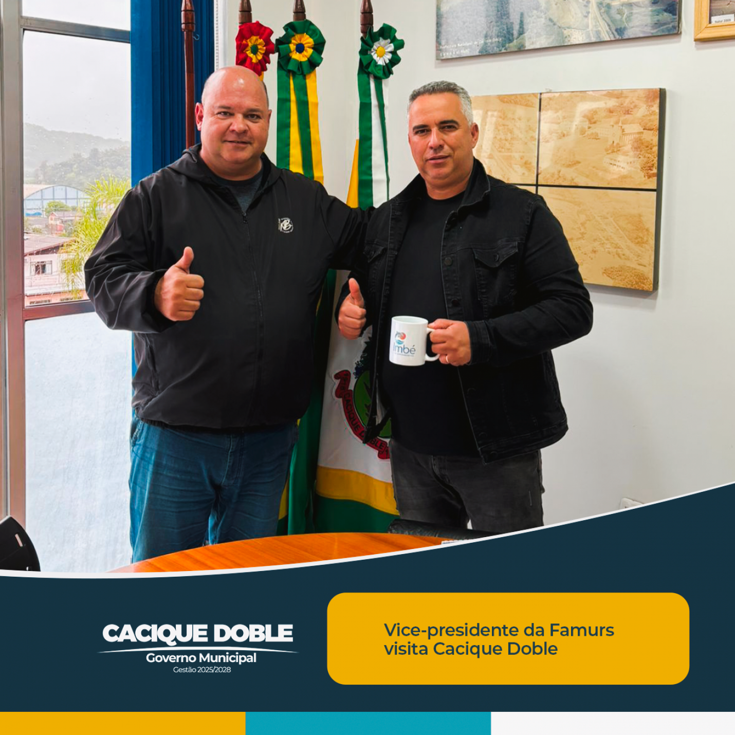 Na tarde desta terça-feira, 30 de setembro, Cacique Doble recebeu a visita do vice-presidente da Famurs e prefeito de Imbé, Ique Vedovato, que esteve na região cumprindo agenda institucional. No município, Vedovato foi recepcionado pelo secretário de Administração, Joceli Paim Zorzan, em encontro que reforçou o diálogo entre a Federação das Associações de Municípios do Rio Grande do Sul (Famurs) e as administrações locais.