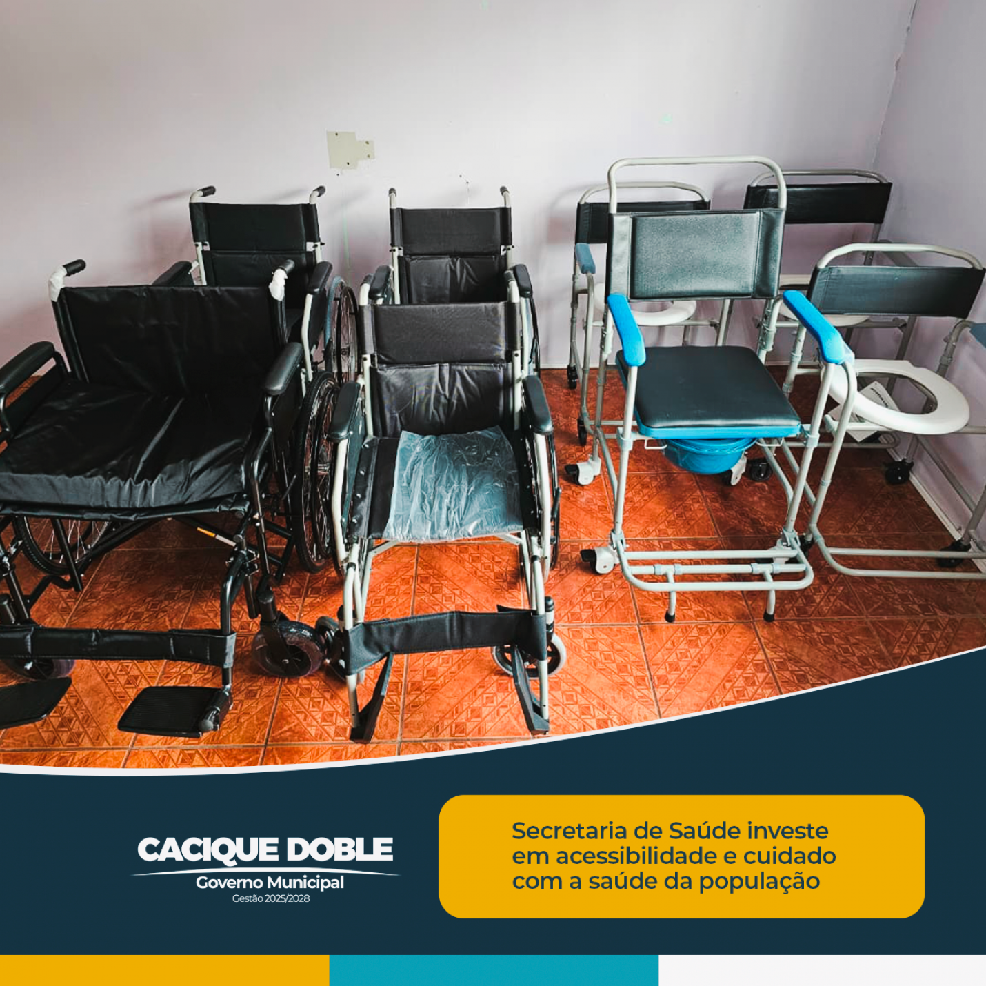 O Governo Municipal de Cacique Doble, por meio da Secretaria Municipal de Saúde, segue investindo em ações que fortalecem a acessibilidade e o cuidado com os cidadãos. Recentemente, o município adquiriu três cadeiras de rodas convencionais e duas adaptadas para pessoas com obesidade, além de três cadeiras de banho convencionais e duas adaptadas, ampliando o suporte aos pacientes com diferentes necessidades de locomoção.