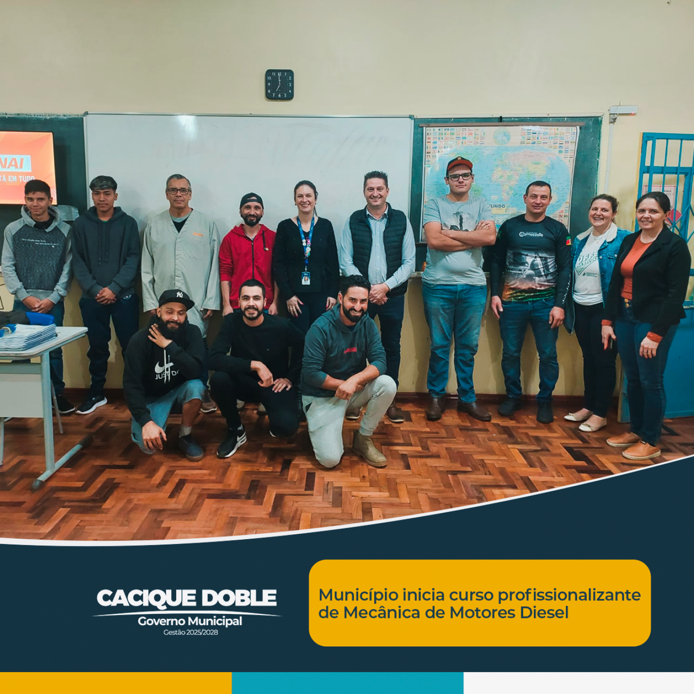 Na noite desta segunda-feira, 6 de outubro, o Governo Municipal de Cacique Doble deu início a mais uma importante iniciativa voltada à capacitação e geração de oportunidades: o curso profissionalizante de Mecânica de Motores Diesel, com 60 horas de duração, promovido por meio do Programa Municipal de Qualificação Profissional, uma iniciativa da gestão que oportuniza qualificação gratuita.