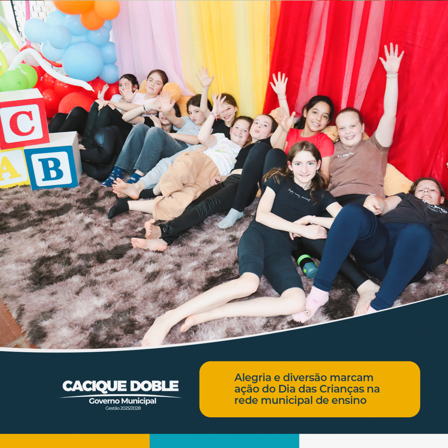 Uma série de brinquedos infláveis integram a ação, que tem como objetivo celebrar a infância e valorizar o convívio escolar de forma lúdica, reforçando o compromisso da gestão municipal com o bem-estar das crianças. “É gratificante ver nossos alunos brincando, sorrindo e aproveitando a infância como deve ser: com amor, amizade e muita diversão”, destaca a responsável interina pela Secretaria de Educação, Suzana Mezzalira.