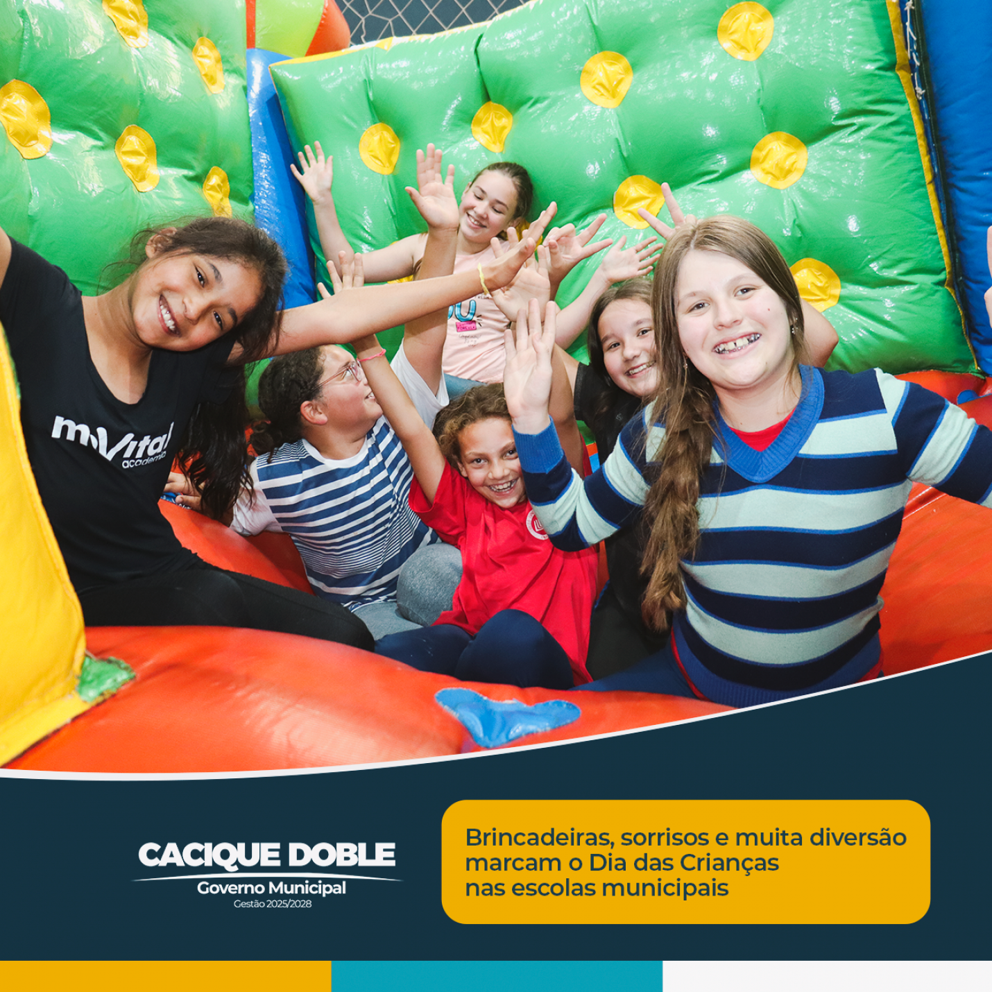 O Ginásio Municipal de Esportes de Cacique Doble novamente se encheu de alegria nesta quinta-feira, dia 9 de outubro, com a programação especial em comemoração ao Dia das Crianças, promovida pela Secretaria Municipal de Educação. As atividades iniciaram ontem, quarta-feira, dia 08, em dois dias de muita diversão, com brinquedos, brincadeiras e momentos inesquecíveis para todos os alunos da Educação Infantil ao 5º ano da rede municipal de ensino.