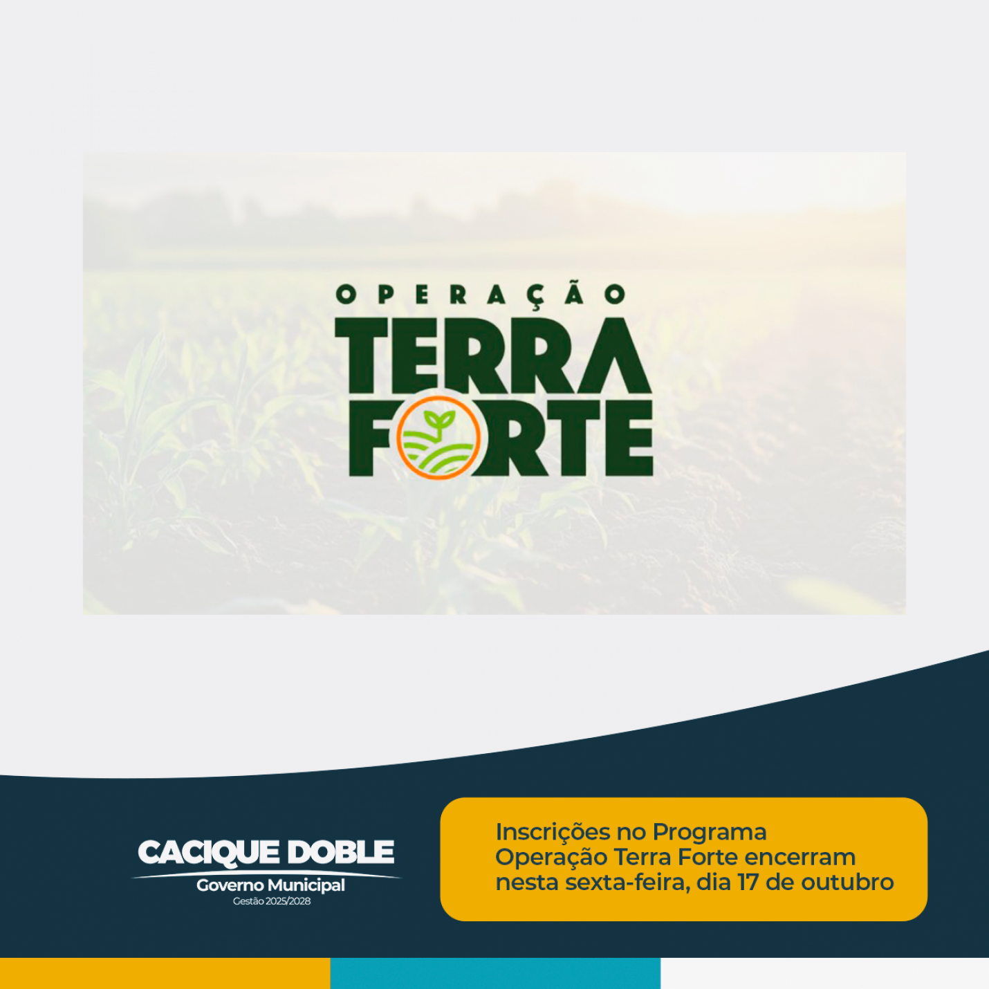 Os agricultores de Cacique Doble têm até esta sexta-feira, dia 17 de outubro, para se inscrever no Programa Operação Terra Forte, uma importante iniciativa voltada à recuperação socioprodutiva e ambiental de propriedades atingidas por eventos climáticos.