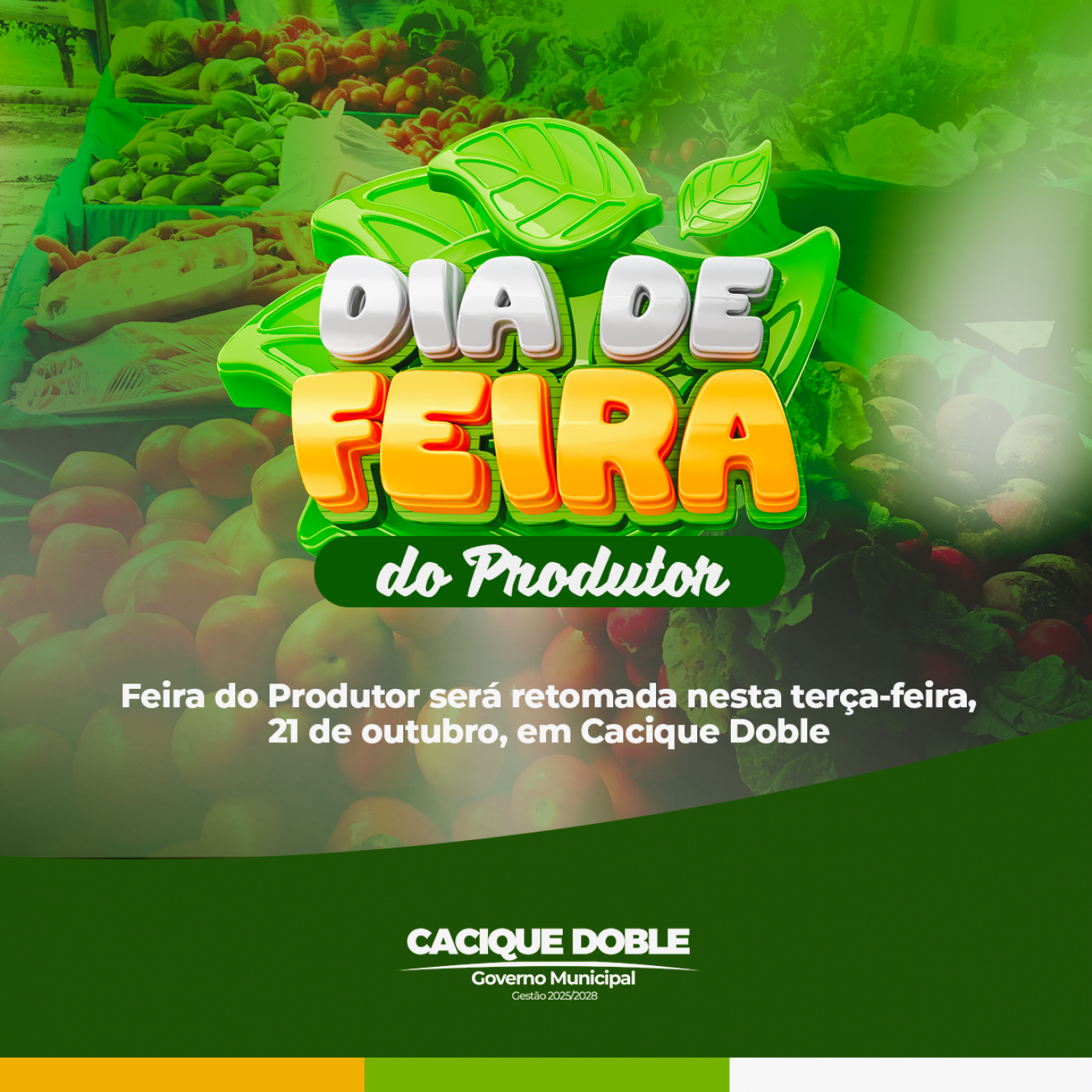 A comunidade de Cacique Doble está convidada a prestigiar a retomada da Feira do Produtor, que acontece nesta terça-feira, 21 de outubro, na Praça da Igreja Matriz, das 15h30min às 18h. O evento é um convite para que a população valorize os produtos locais e incentive o trabalho das famílias da agricultura familiar.