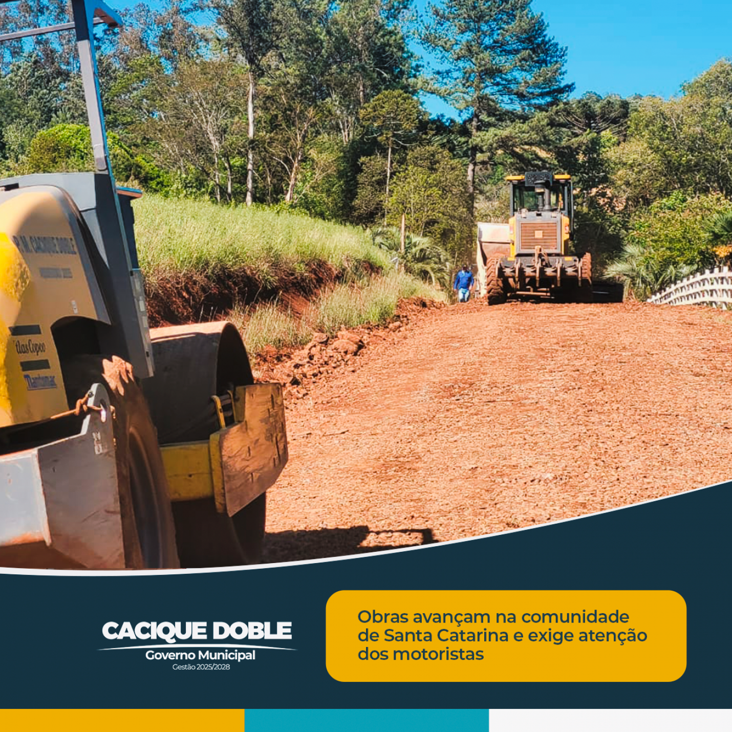 Aproveitando o período de tempo firme, a Secretaria Municipal de Obras de Cacique Doble intensificou nesta semana as obras de alargamento e cascalhamento das estradas na comunidade de Santa Catarina. Os trabalhos compreendem o trecho que inicia na estrada que liga à ERS-343, na entrada da comunidade de São Pedro, passando pela sede de Santa Catarina e retornando à rodovia.