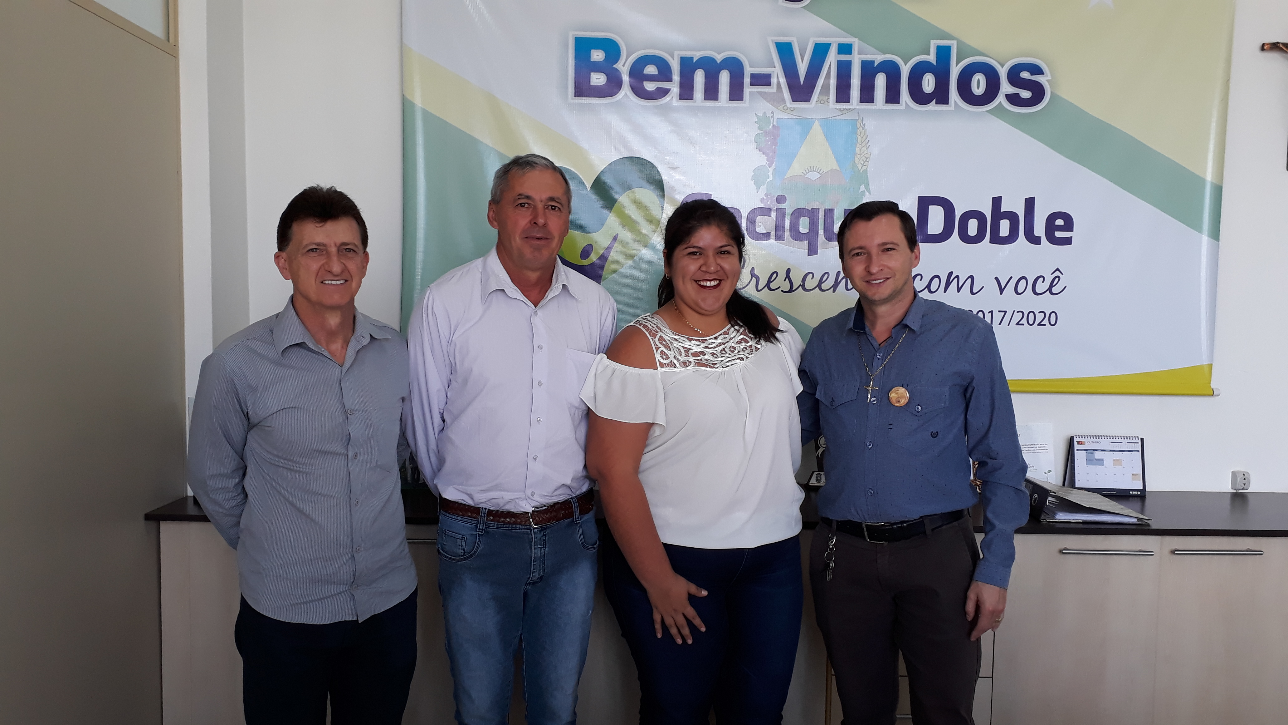 O Prefeito Edivan Fortuna, acompanhado do vice-prefeito Luiz Ângelo Deon e do Secretário de Saúde Josimar Navarini, recepcionou, nesta sexta-feira, dia 10/10/2017, em seu gabinete a nova médica do município.