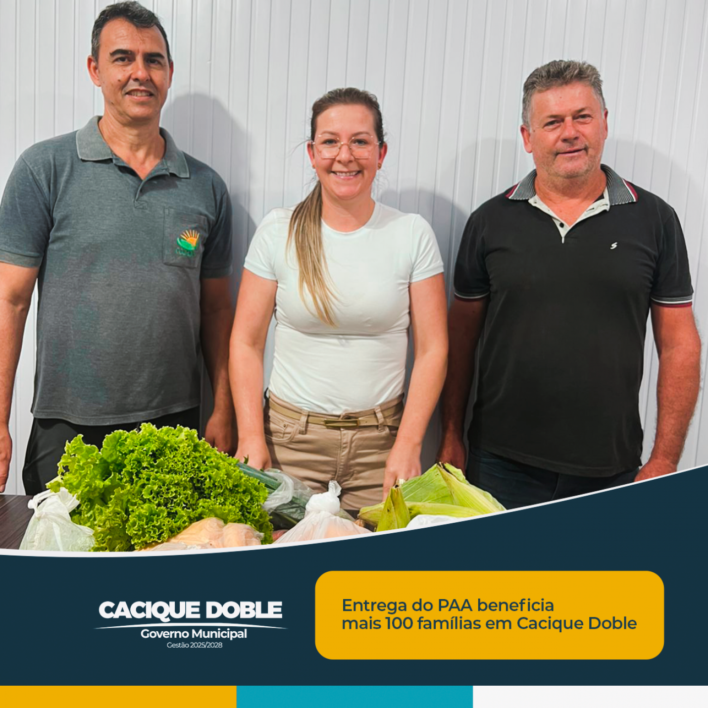 As cestas foram compostas por alimentos frescos e variados, produzidos por agricultores locais, como tomate, repolho, uva, laranja, cebola, milho verde, tempero verde, alface, pão e cuca. A iniciativa garante alimentos saudáveis às famílias atendidas e, ao mesmo tempo, fortalece a produção rural do próprio município.