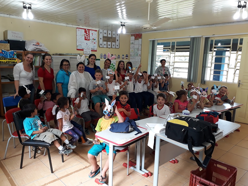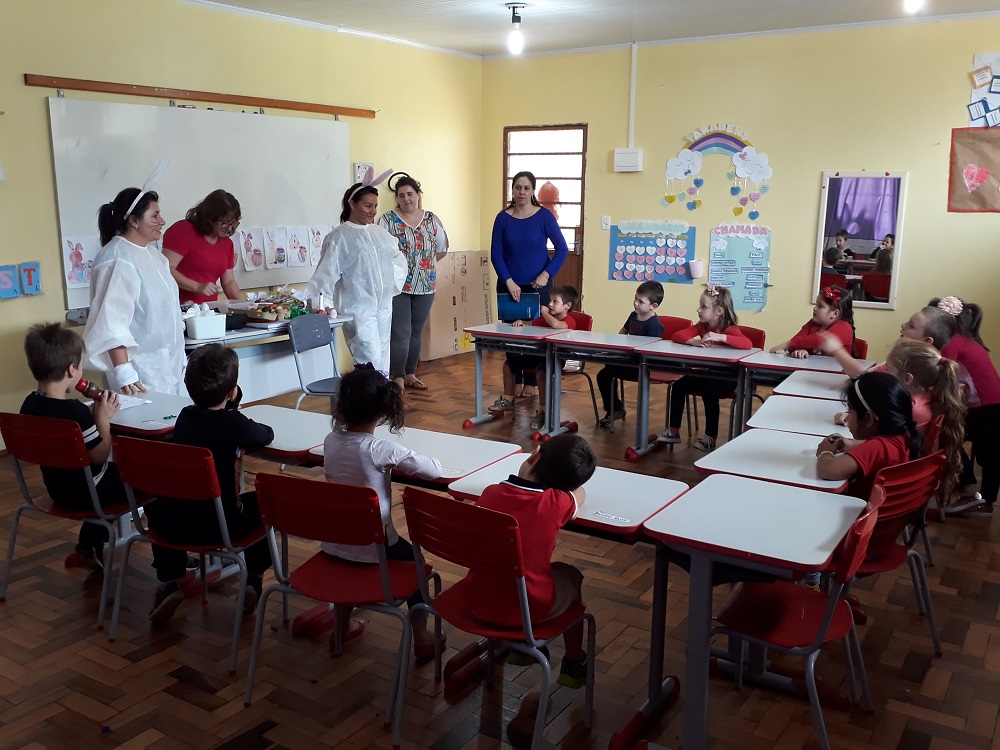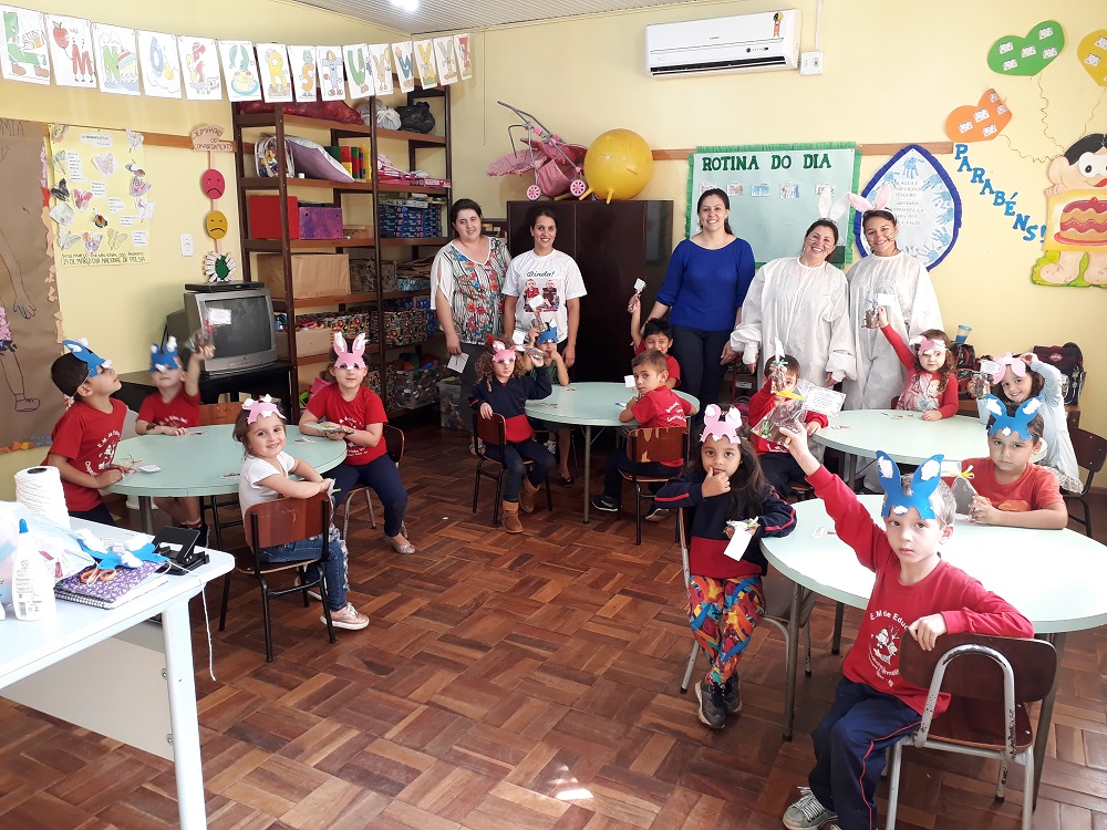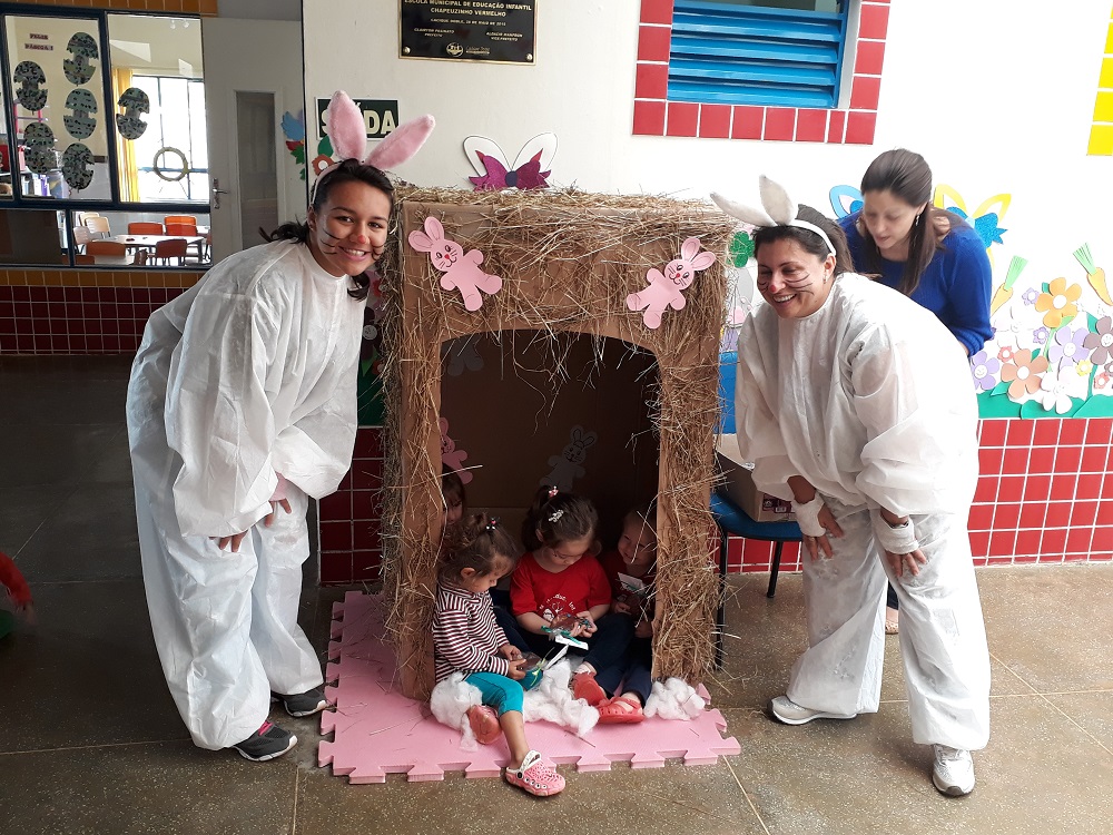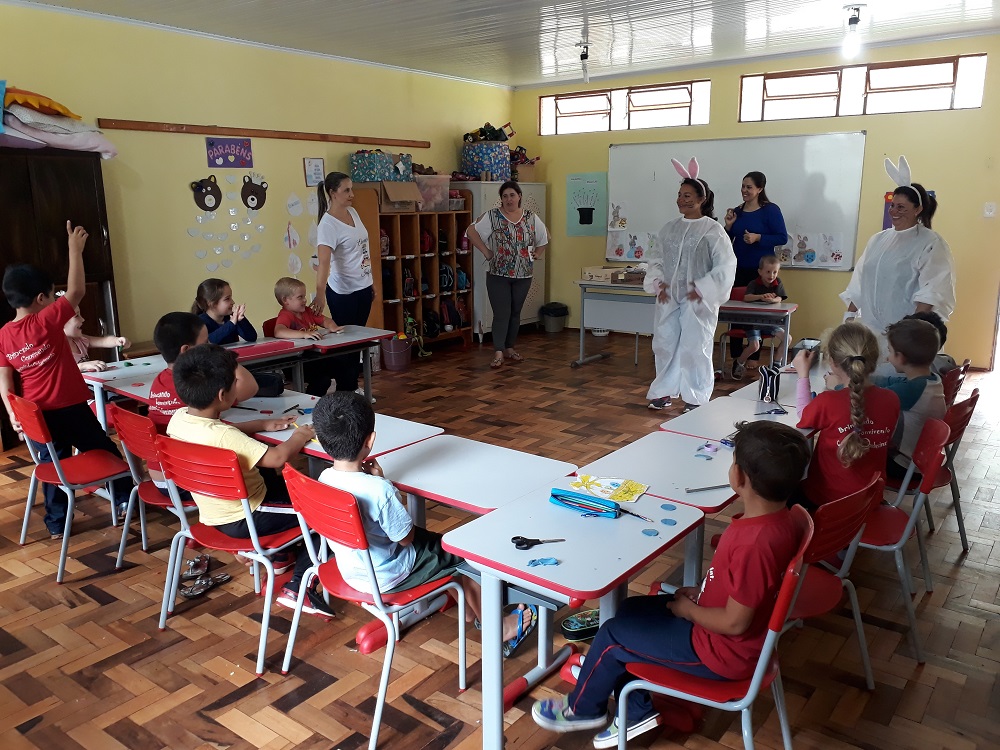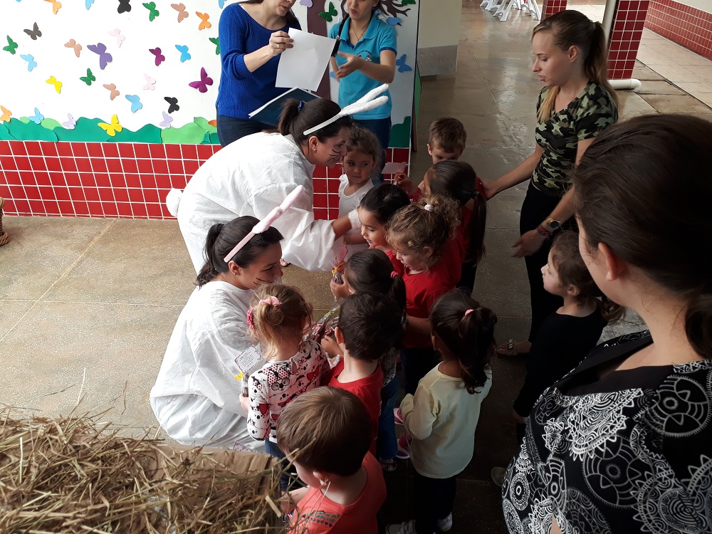 Durante esta quarta-feira, dia 28/03/2018, uma equipe da secretaria da educação, acompanhada das coelhinhas da Páscoa visitaram os alunos da rede municipal de ensino, onde distribuíram um mimo a todos, bem como para os professores e aos funcionários das escolas, ligados a secretaria.