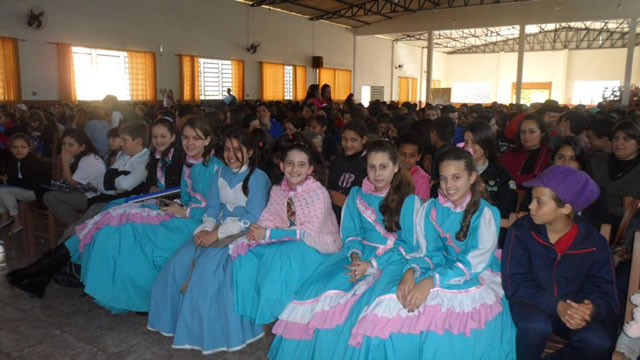 Elas usavam vestidos coloridos, longos e armados. Eles vestiam camisas, coletes, lenços e bombacha. O grupo de pequenos peões e prendas coloriu parte da programação realizada no CTG Rincão dos Coroados, incluindo o Painel Regional com o tema "Eu Sou do Sul", com a painelista, 3ª Prenda Juvenil do RS, Caroline Borges de Lemos. A continuidade das atividades culturais ocorreram no Salão Paroquial, com a participação de todos os alunos da Rede Municipal e Estadual de Ensino, com apresentações dos grupos de Canto "Doce Melodia" - formado por alunos da Escola Estadual de Educação Básica Sylvio Dal Moro - e Aldeia Teatral com a peça "Chimarrito percorrendo as nascentes do Rio Uruguai". Os alunos do Projeto Acordar, da Invernada Artística Rincão dos Coroados e as prendas com as declamações, também mostraram suas habilidades artísticas.